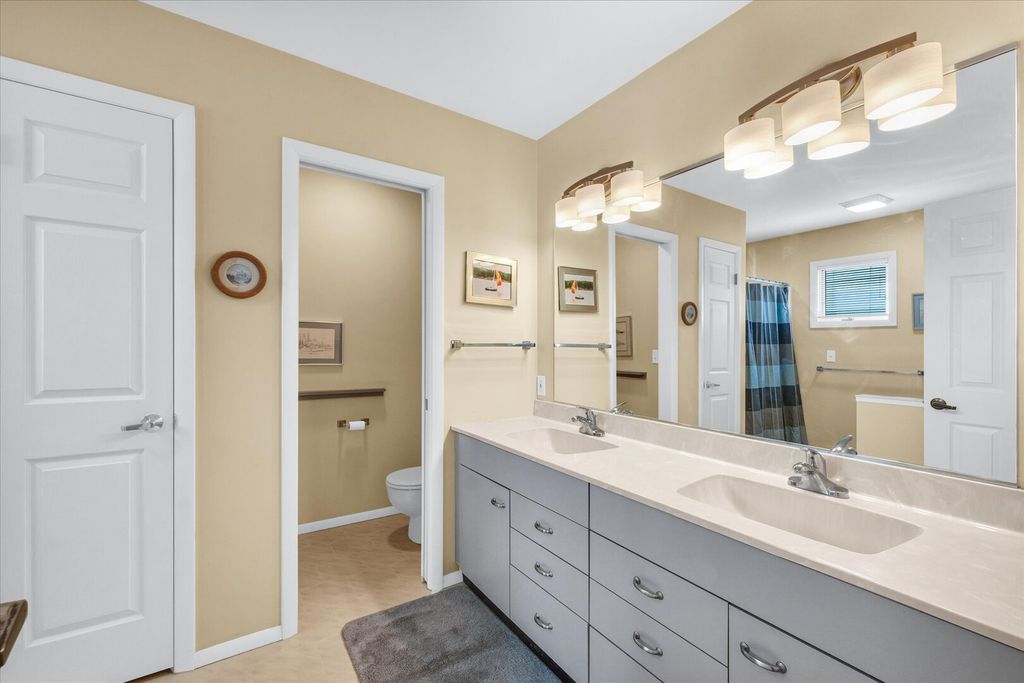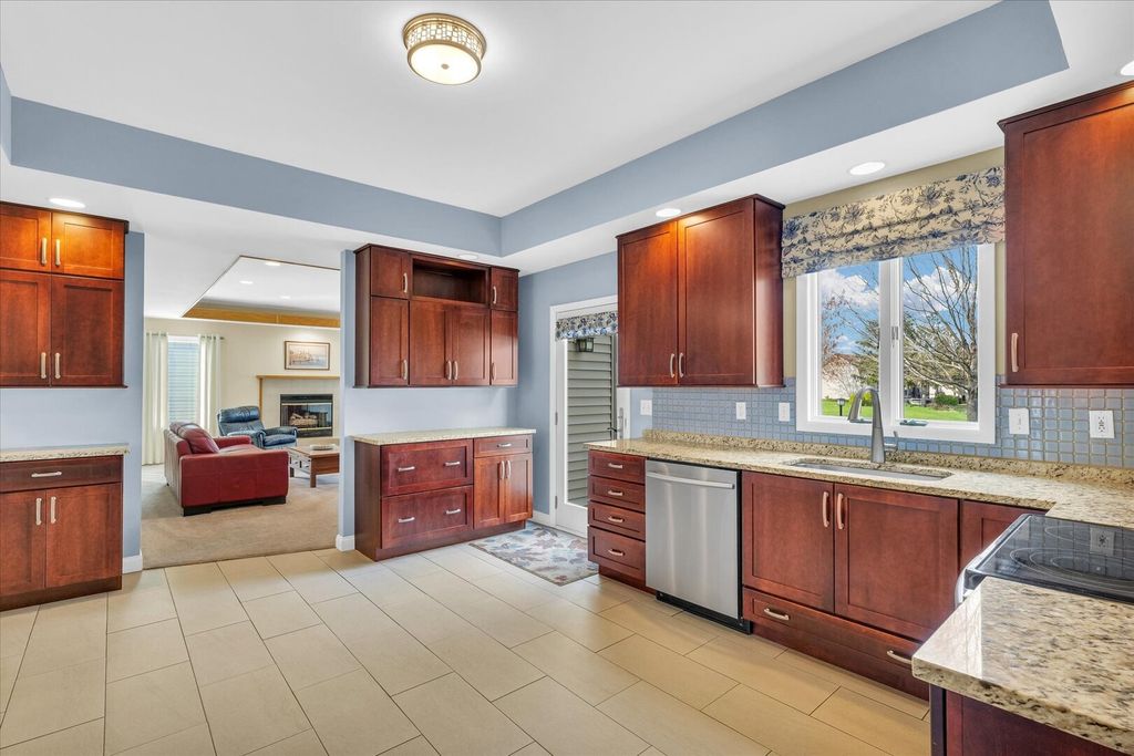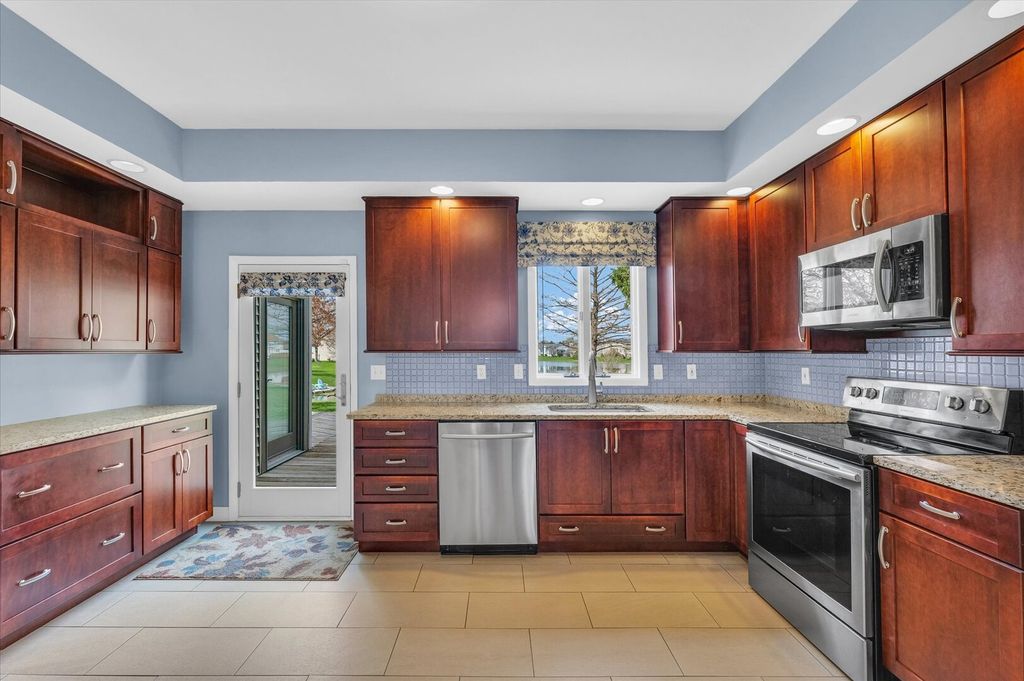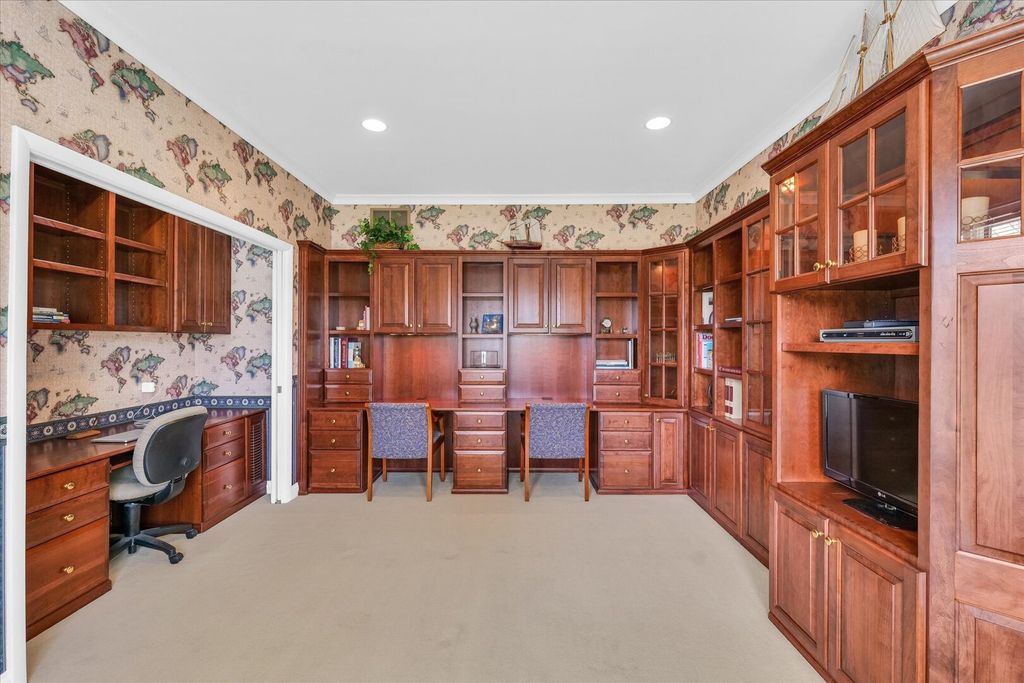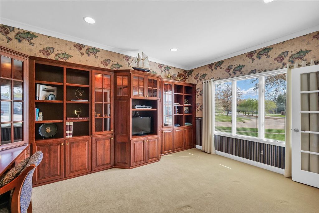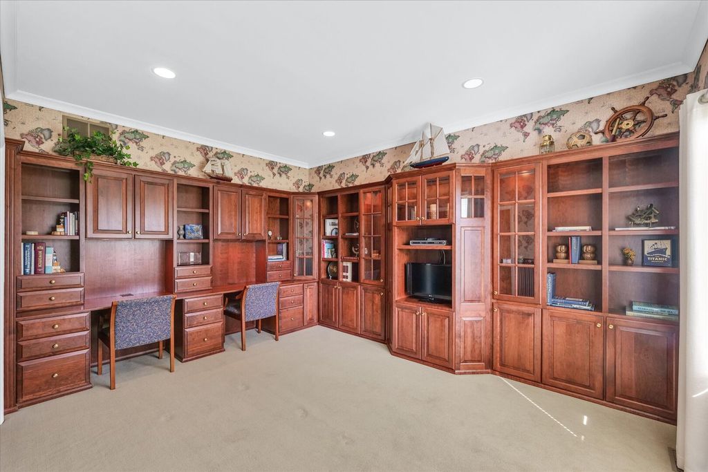 Location, Location, Location! Lakeside home in Glenshire subdivision with exceptional views. Custom built, single-owner home with 2900 sq ft of living space. Spacious living room with fireplace has adjoining small room with a variety of potential uses. Large kitchen space, with separate dining and living rooms. 4 bedrooms, with one fitted as an awesome family room/home office featuring custom cherrywood cabinetry. Upstairs offers a generously-sized primary bedroom with vaulted ceiling and attached bathroom. A second bedroom with a vaulted ceiling is similarly-sized, a versatile space which was originally used by a university student, accommodating both a sleeping area and a study/lounging area. Later served as a combination guest room and upstairs family room; it could be a great bedroom for children to share or for in-laws with its own sitting area. The backyard offers a two-level deck for easy outdoor entertainment. There is an oversized 2-car garage with an adjoining hobby/workshop that has a storage loft above it. Extra's about this home: 9 ft ceilings on the 1st floor, lighted tray ceilings in living and dining rooms, a kitchen pantry, multiple sets of closets throughout, and a laundry room with cabinets and sink. Plenty of storage space. Mature landscaping. This home is designed to function well for everyday living, potentially for multi-generational living, entertaining, and even working from home!