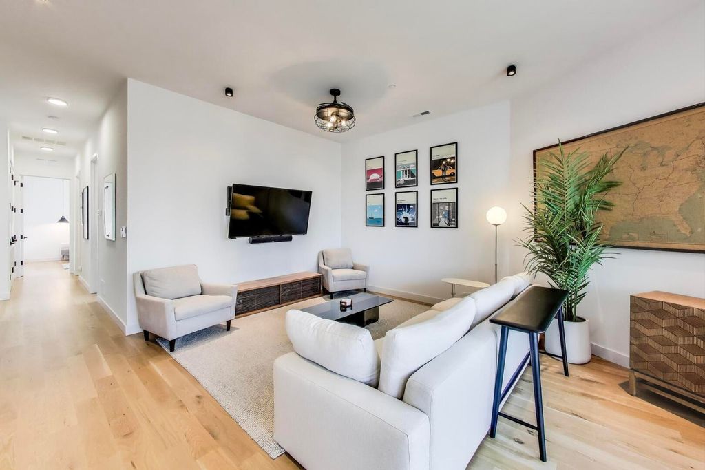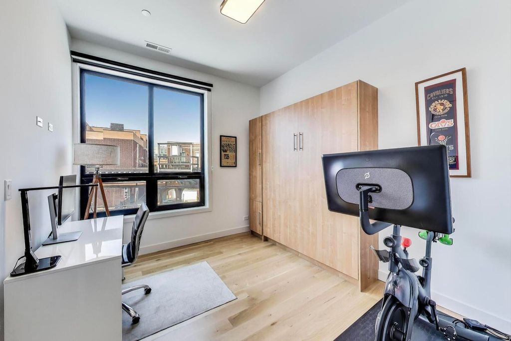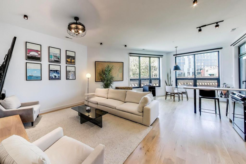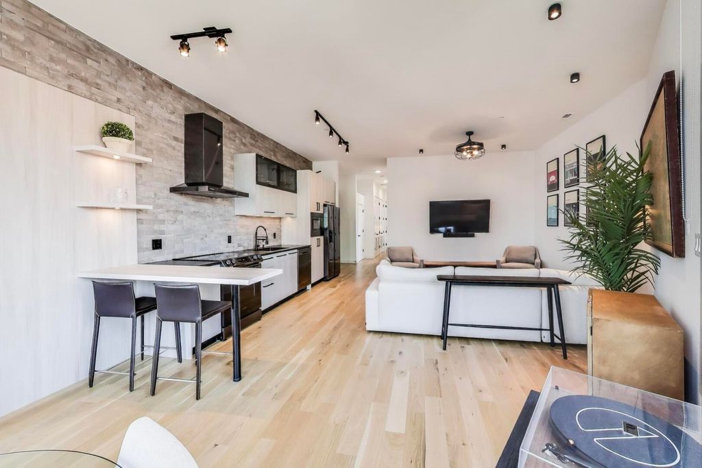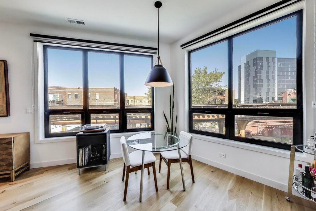 Luxury Modern Living in Prime Logan Square | 2023 New Construction Corner Unit Steps from the Blue Line. Welcome to this stunning 2-bed, 2-bath corner-unit condo, ideally located in the heart of Logan Square-just a 2-minute walk to the California Blue Line. Built in 2023, this newer construction home boasts designer finishes, a smart open-concept layout, and sun-drenched living spaces thanks to expansive windows in every room. Step inside to find wide plank white oak flooring flowing throughout the main living areas, complemented by soaring ceilings and abundant natural light. The chef's kitchen is a showstopper, featuring custom cabinetry with sleek black hardware, a dramatic full-wall brick backsplash, quartz countertops, a large eat-in island, and high-end Samsung black stainless steel appliances-perfect for entertaining or quiet mornings at home. The spacious primary suite is a true retreat, complete with a large walk-in closet, custom lighting, a floating double vanity, and a luxurious walk-in shower with a rainfall showerhead and floor-to-ceiling porcelain tile. The second bedroom is fully outfitted with a custom Murphy bed, making it ideal as a home office, guest room, or both. The second bath includes a deep soaking tub, a custom glass door, and elegant tile finishes. Enjoy indoor-outdoor living with a covered balcony featuring a gas hookup, outlet, and finished in low-maintenance Trex decking, perfect for savoring coffee at sunrise or cocktails at sunset. Additional highlights include triple-pane windows for superior soundproofing, a full-size Samsung washer/dryer, and heated garage parking with an EV charger hook-up and additional outlet included in the price.