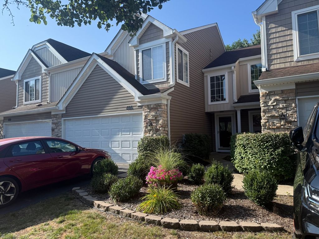 This true 3-bedroom, 2.5-bath townhome offers the perfect blend of comfort, style, and location-nestled in the sought-after Sherwood Forest neighborhood and backing directly to peaceful greenspace for added privacy. Step inside to a bright and inviting two-story entry that fills the main level with natural light. The spacious living room features three large windows with scenic backyard views and flows seamlessly into the eat-in kitchen. The kitchen is well-appointed with granite countertops, a pantry, breakfast bar, and dining area that opens through sliding glass doors to the private patio-perfect for indoor-outdoor entertaining. Newer wood laminate flooring extends throughout the main level, including the convenient first-floor laundry room with access to the attached garage. Upstairs, the generous primary suite boasts a walk-in closet and private en-suite bath. Two additional large bedrooms share an updated hall bath complete with a new vanity and luxury vinyl plank flooring. Enjoy warm weather on the secluded patio overlooking a nicely sized yard lined with mature trees for a serene backdrop. Recent updates include newer siding (4 years) and roof (7 years) for added peace of mind. Ideally located near shopping, dining, parks, schools, and major routes including Rt 59, 19, 20, and I-90 for easy commuting.