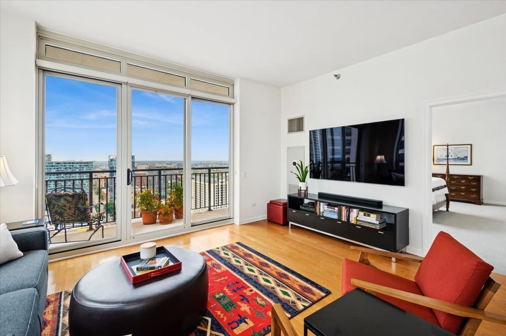 Welcome to urban living at its finest in the heart of the South Loop! This exceptional southeast facing 2 bed/2 bath plus DEN CORNER unit offers city and lake views! Nearly 1500 sqft - this highly coveted tier has a spacious open concept floor plan with a combined kitchen/living room, separate dining or den area and large private balcony. Unit features dramatic 10.5 ft ceilings, hardwood flooring throughout living areas, stainless steel kitchen with granite countertops, breakfast bar with plenty of counter & cabinet space and in-unit washer/dryer. Bright and sun-filled - this corner unit has oversized windows that bring in an abundance of natural light. Desirable split bedroom floor plan - large primary suite with walk in closet, en-suite bath with dual vanity with separate shower and soaking tub. Generous second bedroom with additional walk in closet. Second bath with dual vanity and shower/tub. Prime garage parking space available for additional cost. Full amenity and professionally managed building with 24 hour door staff & on-site management, outdoor pool, fitness center, package receiving room, business center, roofdeck, bike room, dry cleaners and more! Assessments include RCN cable TV, internet/wifi, heat, a/c and gas. Owner only pays electric! Easy access to Lakeshore Drive, I-55 and 90/94. Steps away from the "L" Red, Orange and Green line trains at Roosevelt. Enjoy the best the south loop has to offer by being close to the Lake, Soldier Field, Museum Campus, Grant Park, Buckingham Fountain and The Loop. Walking distance to Trader Joes, Paris Baguette, Eleven City Diner, Jewel, Whole Foods, Target, shopping at the Roosevelt Collection and so much more! Don't miss an opportunity to be at the center of it all in this exceptional, one of a kind home!