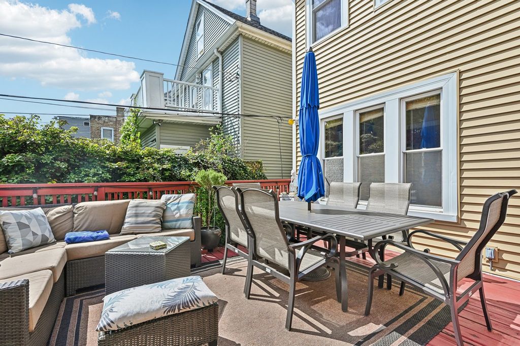 Embrace historic character with modern-day convenience in this beautifully preserved home nestled in the heart of Ravenswood. Four levels of living space, set on an extra large lot, this residence showcases four bedrooms and two-and-a-half baths thoughtfully arranged for both family living and entertaining. Step inside and you'll be greeted by sun-filled living spaces, hardwood floors, and classic architectural details that create a warm, inviting atmosphere. The kitchen offers plenty of storage and prep space, perfect for entertaining or weeknight dinners. Upstairs, the bedrooms are generously sized. Great 4th bedroom in the attic space, filled with natural light from the skylights. The finished basement allows the opportunity to flex the space to your needs. Enjoy summer evenings relaxing or entertaining in your huge backyard with lush landscaping, large deck and a handsome pizza oven. Newer HVAC, roof and siding. Two car garage with a side concrete pad allowing for a 3rd parking spot. Located near everything that Ravenswood and Lincoln Square have to offer: Multiple Parks, tons of dining, cafes, breweries, and much more.