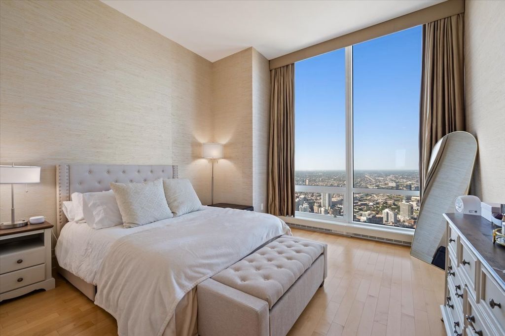 Luxury high-floor 1 bedroom, 1.5 bathrooms residence on the 71st floor of Trump Tower, offering breathtaking panoramic views of the lake and city skyline through soaring 11' floor-to-ceiling windows. This impeccably designed home features top-of-the-line finishes throughout, including Wolf, Sub-Zero, and Miele stainless steel appliances in the gourmet kitchen. The spacious primary suite boasts a large walk-in closet and a luxurious limestone bath with dual vanities, soaking tub, and separate glass-enclosed shower. Residents enjoy full access to Trump's world-class 5-star amenities including a state-of-the-art fitness center, spa, concierge, and more.