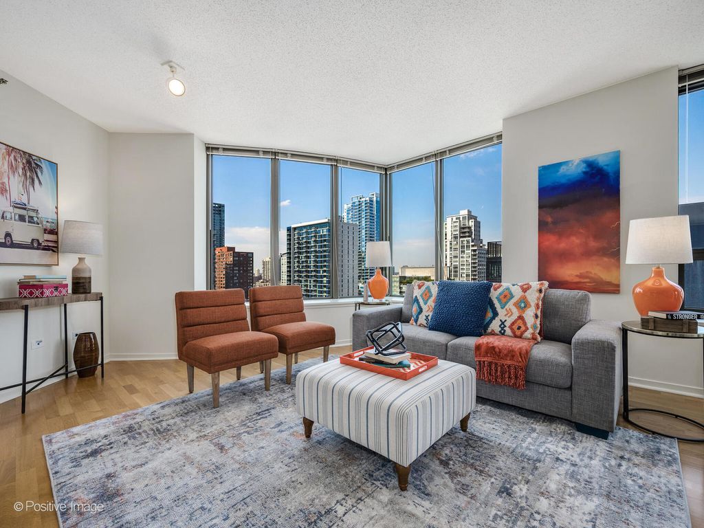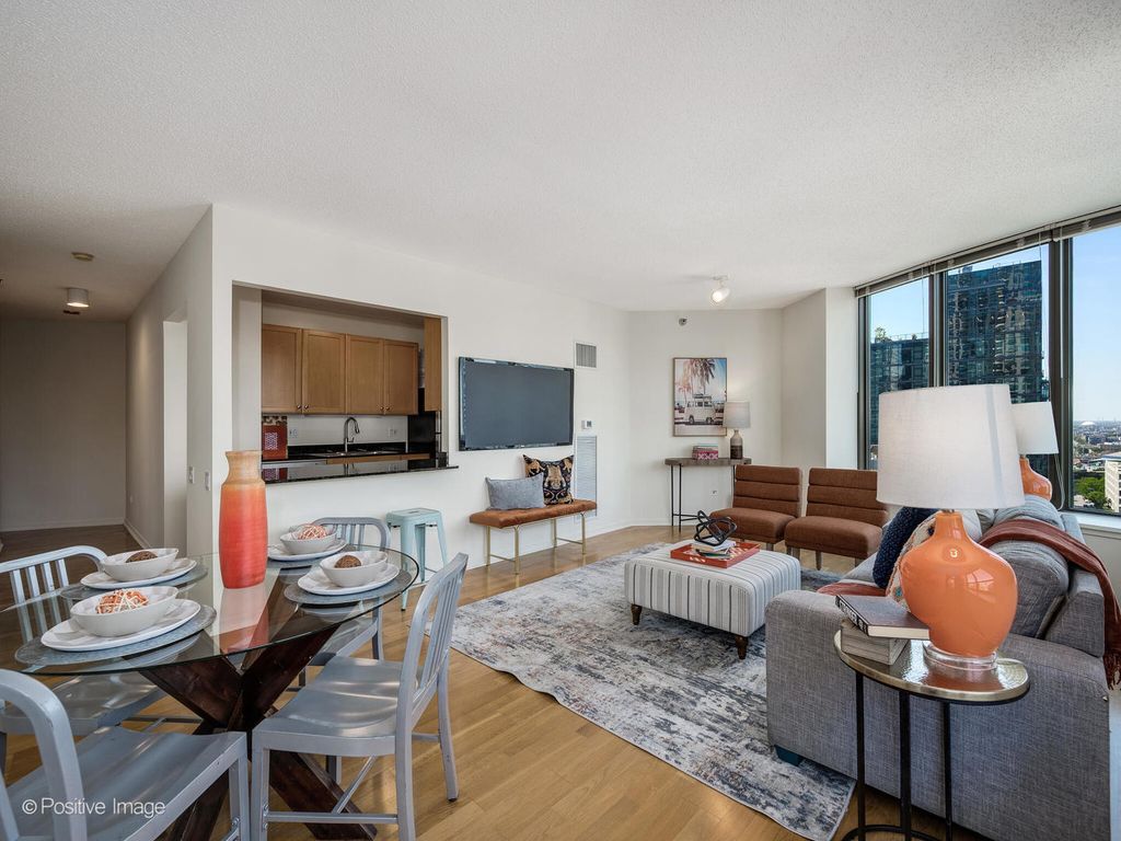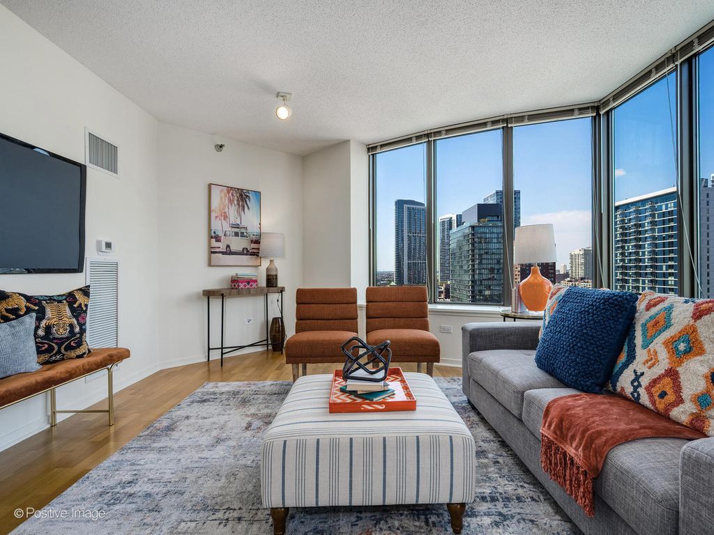 Experience vibrant River North living in this spacious 1-bedroom, 1-bath corner condo at 400 N LaSalle. This home features floor-to-ceiling windows with northwest exposure that fill the space with natural light and showcase panoramic city views from the private balcony. The open layout flows from the entry foyer into the kitchen, dining, and living areas, creating an inviting space for both everyday living and entertaining. The oversized bedroom easily accommodates a king bed and features a generous walk-in closet, while the in-unit W/D and additional storage provide everyday convenience. Residents enjoy resort-style amenities including a newly renovated fitness center, outdoor pool with sundeck, grilling stations, pergolas, fire pit, and lush landscaping. Additional features include a social room with TV and games, 24-hour door staff, on-site maintenance, attended dry cleaning and package receiving, secured bike storage, and a dedicated dog relief area. Steps from the Riverwalk, East Bank Club, public transit, and many of the city's best restaurants, this prime River North location puts the best of Chicago right at your doorstep.