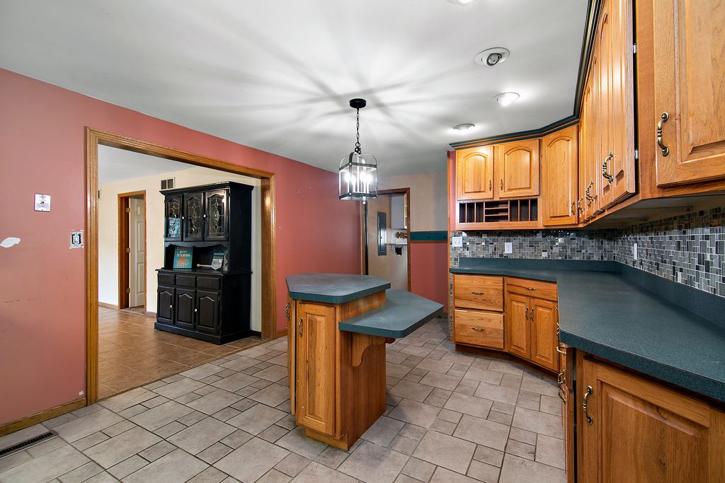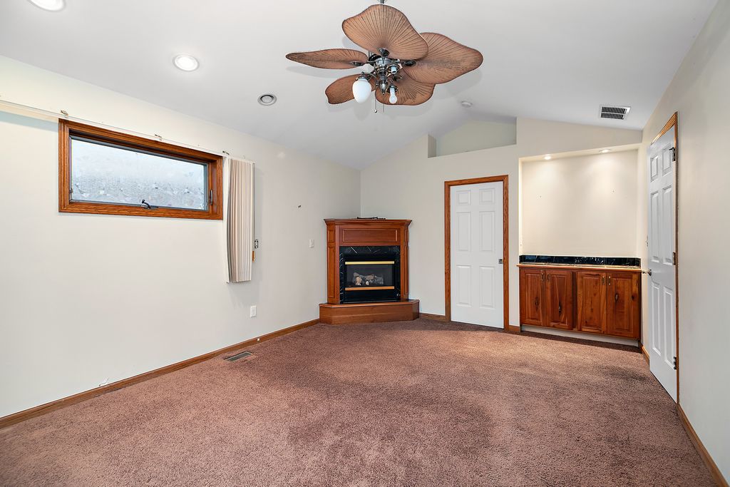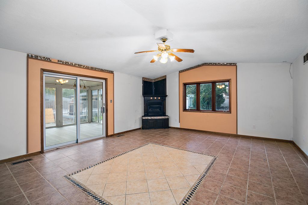Located in desirable Manteno, this all-brick ranch offers 3 bedrooms and 2.5 baths, including a master suite with vaulted ceilings, a walk-in closet, Jacuzzi tub, and separate shower. The home features durable vinyl windows, an architectural roof, and wrapped gutters and soffits, with a backyard highlighted by unique landscaping. Inside, a spacious living room with solid hardwood floors flows into a versatile office area/potential 4th bedroom, while the kitchen provides solid wood cabinetry, stainless steel appliances, and a center island with breakfast bar. Not to mention a cozy four-seasons room and additional living space with vaulted ceilings, ceramic floors, and a corner fireplace, adds even more potential. Newer HVAC. This property offers great space, character, and functionality at an excellent price point-an ideal opportunity for buyers looking to build equity in a sought-after location.