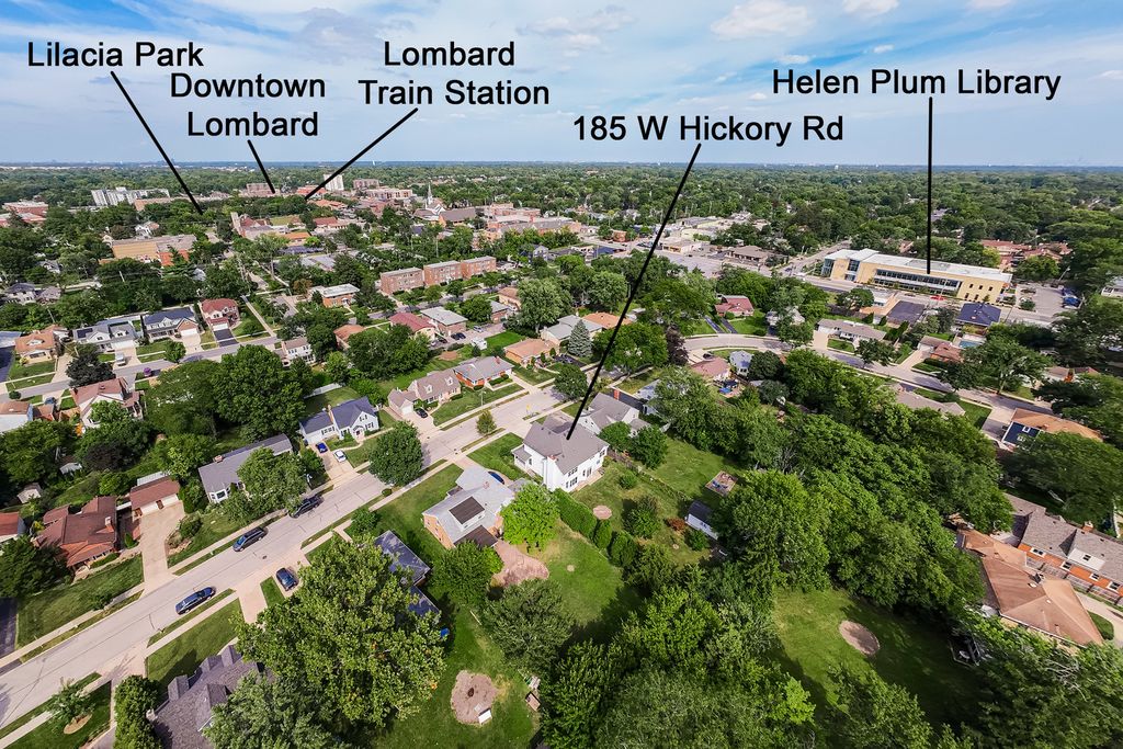Welcome to 185 W Hickory-an elegant residence that combines timeless design with modern comfort. The inviting living room, highlighted by a stately wood-burning fireplace, flows seamlessly into a spacious kitchen, offering the perfect space for both grand entertaining and intimate gatherings. A first-floor office offers versatility as a dedicated workspace, cozy library, or den, while the attached two-car garage ensures everyday convenience. Upstairs, the primary suite is a serene retreat featuring a tray ceiling and a spa-inspired bath complete with a jacuzzi tub. Three additional bedrooms and a full hall bath provide generous accommodations for family and guests. All four bedrooms boast large walk-in closets. The high-ceiling unfinished basement, with roughed-in plumbing, presents an incredible opportunity to design the lower level of your dreams. Outdoors, a sprawling private backyard with a shed awaits-ideal for al fresco entertaining, gardening, or quiet relaxation. With over 2800 square feet of finished living space, this beautifully built home offers an unmatched blend of sophistication and location, just moments from downtown Lombard, the Metra, The Great Western Trail, and Lilacia Park.
