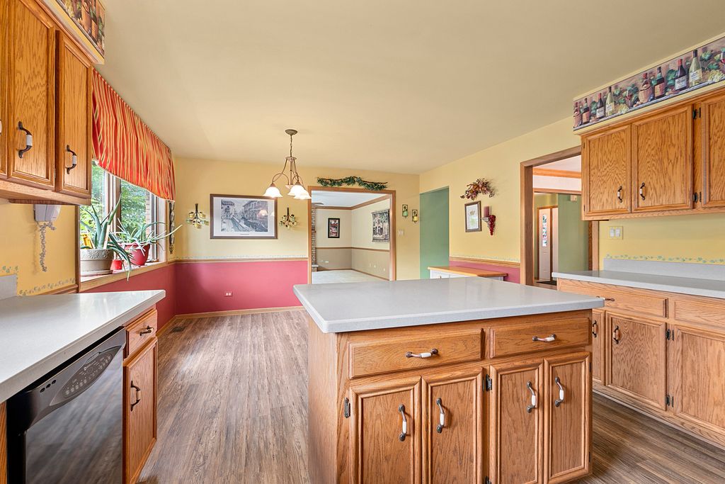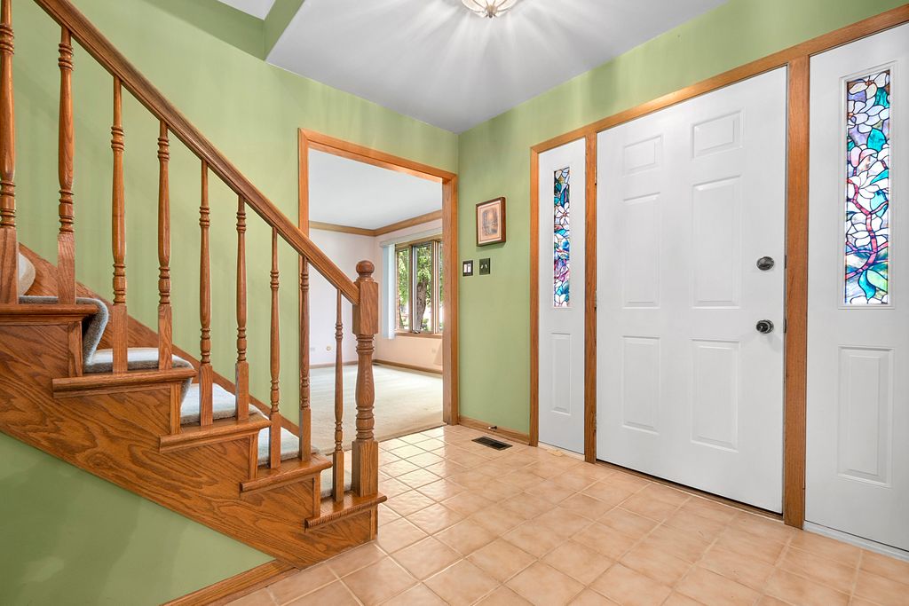 Welcome to this spacious and beautifully maintained two-story home offering comfort, functionality, and thoughtful updates throughout! Located in sought after Eagle Ridge, this home features a desirable floor plan ideal for both everyday living and entertaining. Newly installed sump pump, new hot water heater (2021), and a new furnace with humidifier and A/C (2021). Heading inside to a welcoming living room and formal dining room, both enhanced with elegant crown molding for a touch of sophistication. The large eat-in kitchen is a true centerpiece, featuring new vinyl flooring (2022), a bay window that fills the space with natural light, an island, breakfast bar, corian countertops, and a pantry closet for added storage. Adjacent to the kitchen is the cozy family room with crown molding, a brick gas fireplace, and sliding doors that lead to the backyard patio, perfect for indoor-outdoor living. The main level also includes a full bathroom with a granite countertop and walk-in shower, plus a laundry room complete with cabinetry and shelving. Upstairs, the primary suite offers a peaceful retreat with a walk-in closet and a luxurious en-suite bathroom featuring a whirlpool tub (installed in 2011), separate shower, and a granite sink countertop. Three additional nicely sized bedrooms and a full hall bathroom with a tub and granite countertop complete the second floor. The full unfinished basement offers great potential for future expansion or storage. Outside, enjoy the fully fenced backyard with a concrete patio and attached awning, ideal for relaxing, grilling, or entertaining guests. Don't miss this move-in ready home with plenty of space and modern upgrades-schedule your showing today!