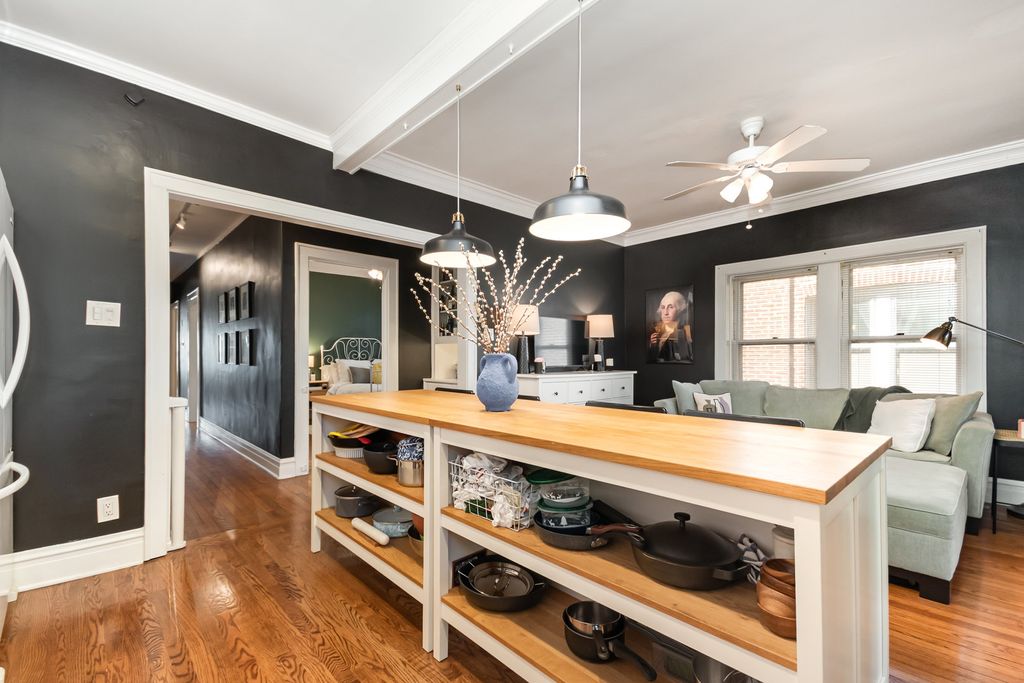 Don't want to choose between charm, natural light, and updated finishes? This charming 2-bedroom, 1-bath combines historic character with thoughtful updates in an unbeatable location, just steps from Northwestern and downtown Evanston. Natural light fills the home through windows facing every direction. The front of the home offers a south-facing living room with a fireplace surrounded by beautiful custom built-in bookcases. A Juliet balcony and adjoining sunroom provide the ideal spot for a home office or reading nook. This home has multiple living spaces for family living and entertaining and also a great separation of spaces when privacy or noise separation is preferred. The updated open kitchen features timeless cabinetry, chic subway tile, a massive sink, and granite counters, flowing into a flexible space for a big dining space or the current extra den. Another sunny rear sunroom currently used as an office can easily convert into another guest space overlooking the shared backyard. Record amount of storage between huge bedroom closets, linen closets, two big coat closets, an extra storage room in the basement charming AND built in shelving in the living spaces, hallways, and bathroom. Enjoy proximity to Northwestern, the CTA Purple Line, Clark Street Beach, Lake Michigan, and all of downtown Evanston's dining and shopping. Monthly assessment includes property taxes!