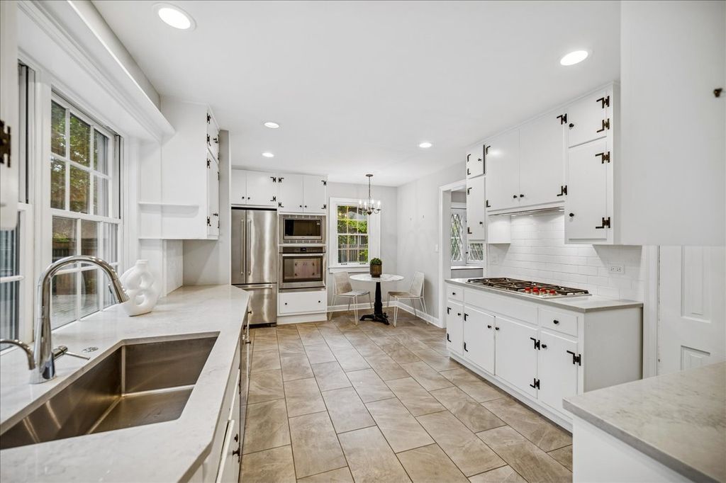 Welcome to your serene oasis nestled on a private .85-acre lot in the heart of Winnetka. This enchanting home greets you with a gated drive and is surrounded by mature trees, offering unmatched privacy. Inside, the living room boasts a cozy fireplace, while the updated kitchen flows into a adjacent dining room. The family room, also with a fireplace, opens to a patio and spacious yard, offering exceptional views of the great outdoors. The first floor also features large mudroom (with Dutch door), laundry, and updated powder room. Upstairs, the luxurious primary suite offers a fireplace, renovated bath, and stunning views of the lush surrounds. Three additional bedrooms and a renovated hall bath complete this level. The third floor provides a versatile open space for endless possibilities for recreation, extra bedroom space or private office. Recent upgrades include new electrical and plumbing updates, a new roof and gutters (2023), and exterior painting (2022), with all bathrooms renovated in 2018. This charming home offers the potential to expand into your forever home or enjoy its timeless allure as it stands. Don't miss this extraordinary opportunity in a prime location.