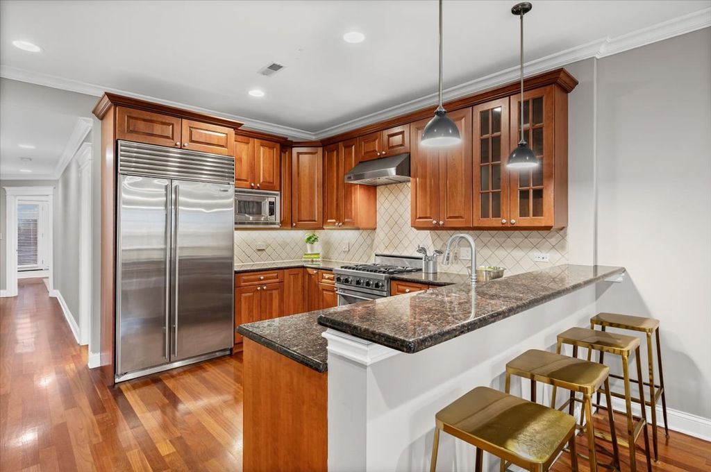 Welcome home to this spacious, extra-wide residence in the heart of Lincoln Park! Set in an all-brick building, this beautiful unit features tall ceilings, crown molding, and heated floors throughout. Open layout with Brazilian cherry hardwood floors, sun-filled living and dining areas, and a custom kitchen with granite countertops, cherry cabinetry, a breakfast bar, and high-end Viking and Sub-Zero appliances. The primary suite includes a large, custom walk-in closet and a ensuite bathroom with steam and rain shower, separate bathtub, plus access to one of two outdoors spaces (which can also be accessed from the hallway as well). Two additional bedrooms include generous closets and share a second full bath. Two outdoor spaces - covered patio located directly off the primary bedroom along with a brick paver patio perfect for entertaining. Located in an AWESOME Lincoln Park location; close to dining, shopping, parks, DePaul, Oscar Mayer, public transit, and everything Lincoln Park has to offer. Exterior parking space included.