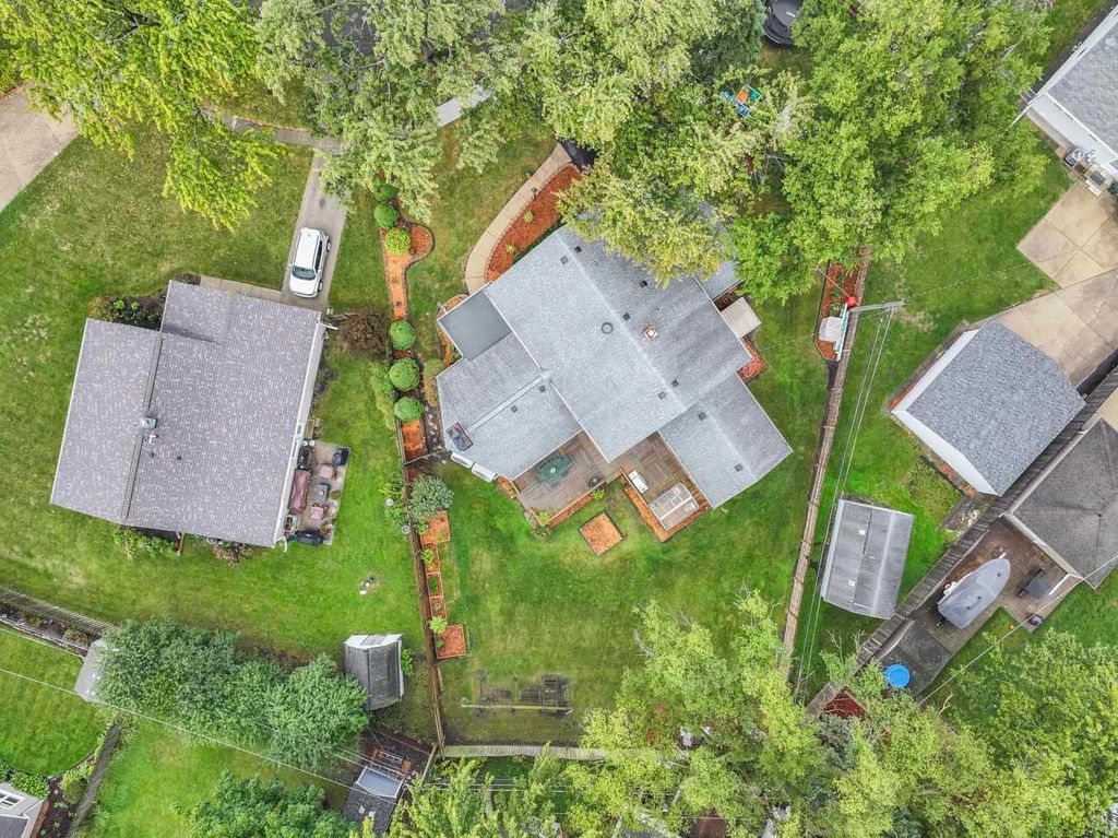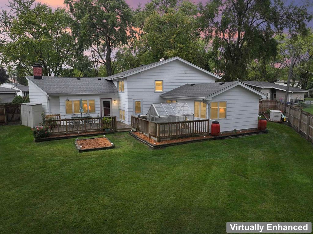 Situated in a quiet culdesac and close to shopping, restaurants, and the expressway for easy commutes, this unique and versatile floor plan is perfect for multigenerational living. As you enter the house, the cathedral ceilings, floor-to-ceiling fireplace and natural light embody the great room which opens onto a deck. Up a half flight of stairs, the formal dining room with hardwood floors leads into the kitchen with stainless steel appliances, oak cabinets and an eating space. Down the hall are two bedrooms with hardwood floors and wall closets. A short flight down at the end of the hall accesses the private owners' retreat with sliders to the deck and a full ensuite bathroom with a separate shower and tiled floors. The lower level offers a family/recreation room, additional bedroom, full bathroom with a jetted tub, tons of closet space for storage and direct access to the backyard. The fenced backyard has two decks, swingset, two sheds and a greenhouse. More space than meets the eye.