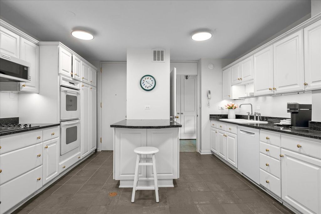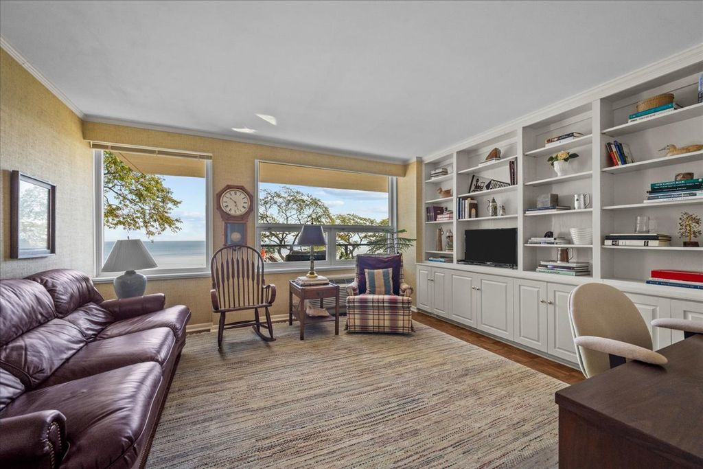 Move right in to this desirable 2 bedroom, 2 bath single-level condo (no stairs!) with breathtaking lake views from every room. The spacious kitchen offers abundant cabinetry and counter space, while the open living and dining areas showcase a dramatic wall of windows overlooking the pool, private beach, and gorgeous Lake Michigan. Step outside to a private balcony with sliding doors-the perfect spot to enjoy lake breezes and breathtaking views right from the comfort of your own home. Both bedrooms are generously sized - also with stunning lake views. The primary suite includes a private bath and terrific closet space, while the second bedroom is served by a full hallway bath. Additional conveniences include an in-unit washer/dryer and a hallway linen closet. This full-amenity building provides 24-hour doorman, exercise and party rooms, outdoor pool, storage, and one heated underground parking space. HOA includes real estate taxes. All this in a prime location across from the newly reimagined Plaza del Lago-offering shopping, dining, groceries, and more just steps from your door. Lakefront living at its best!