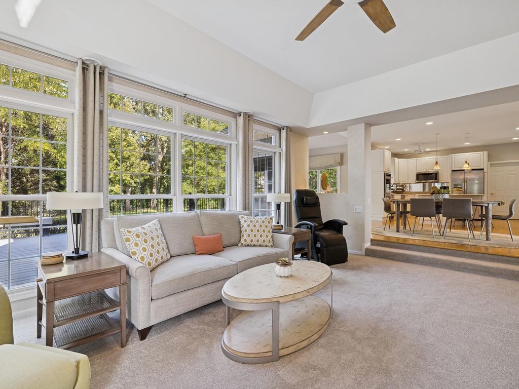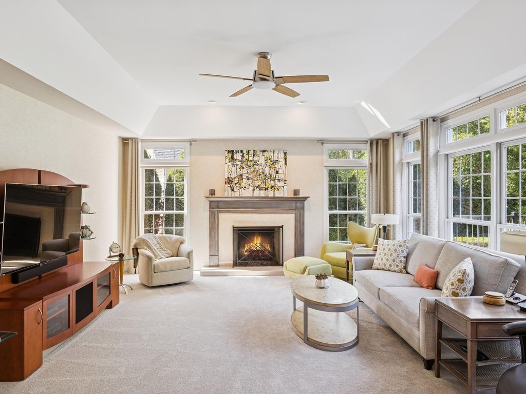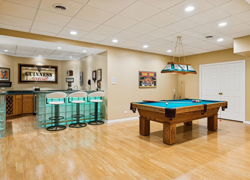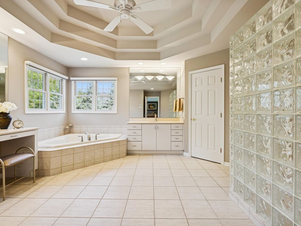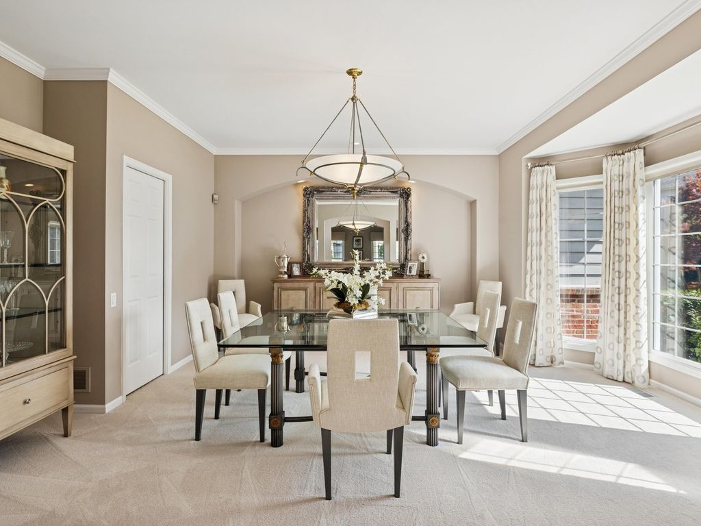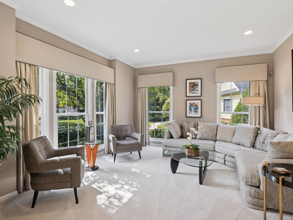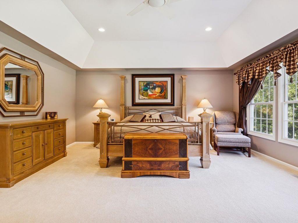 Welcome to this stunning home, on a cul de sac, in the desirable Cherry Creek Subdivision of Prospect Heights. Situated on an expansive lot in a quiet, peaceful setting, this beautifully maintained residence offers 4 + 1 spacious bedrooms, 3.5 baths, and a 3-car garage. Inside, you'll find designer touches throughout including a beautiful formal dining room, elegant living room, and a huge family room with fireplace and windows galore. A bright sunroom/sitting area adds a cozy spot to relax. The huge primary suite features a luxurious spa-like bath that feels like your own private retreat. The home's open and inviting floor plan flows seamlessly to the outdoors, where you'll enjoy a Trex deck overlooking the expansive yard. The finished lower level is a true showstopper-designed with the feel of an Irish pub, it's the perfect space for entertaining. Updates include: Roof 2017, Driveway 2016, Remodel 2017, Washer & Dryer 2024, 400 AMP service, furnace/AC 3 years old. With its blend of comfort, style, and character, this home is truly exceptional.