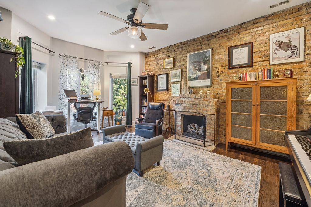 Welcome home to this charming, sunlit two-bedroom, two-bath plus den condo in Graceland West. You'll fall in love with its whimsical finishes and urban feel, highlighted by beautiful exposed brick. The versatile floor plan offers multiple living spaces, including a dining room right off the kitchen-a perfect setup for entertaining. The kitchen is a standout with its stainless steel appliances and leathered marble countertops. Retreat to the primary suite, which features a spacious en-suite bath and a walk-in closet. Other notable features include a gas-burning fireplace, in-unit washer and dryer, and one parking space for the car you will never need while living here. With a prime location that's just a short walk from the L train, shops, restaurants, and grocery stores, you'll find yourself exploring everything the Southport Corridor has to offer. Feeling nostalgic, grab your cone at the DQ and walk a little further for a Cubs game! This is Chicago living at its best!