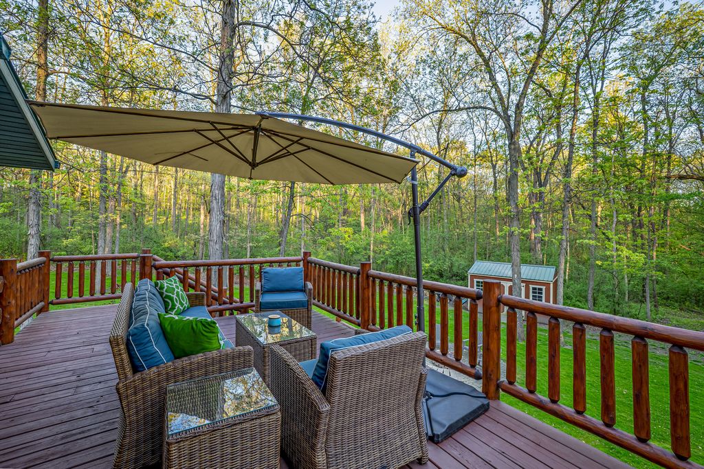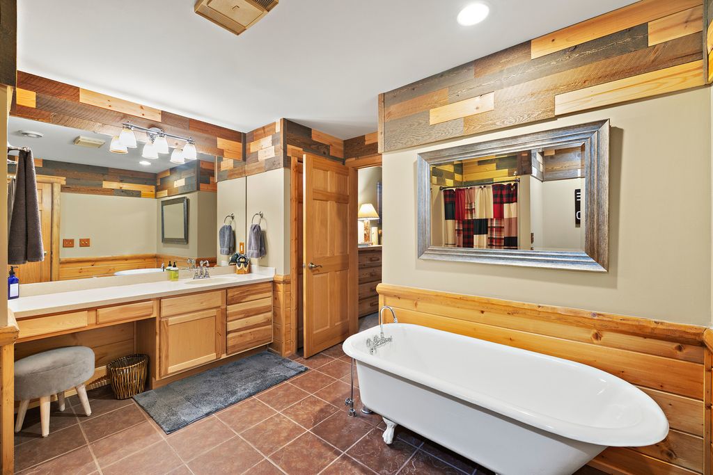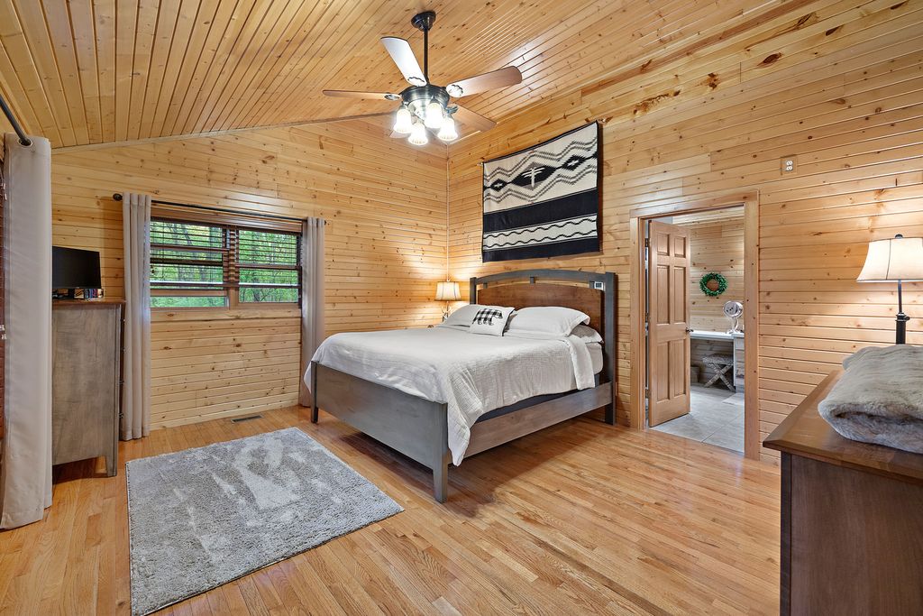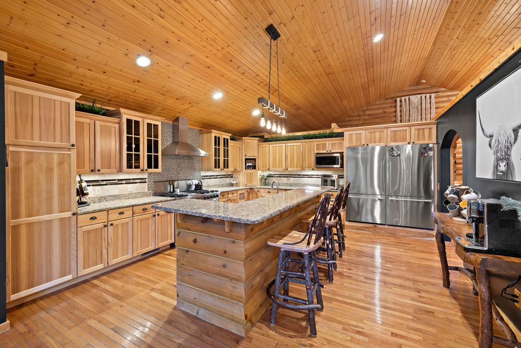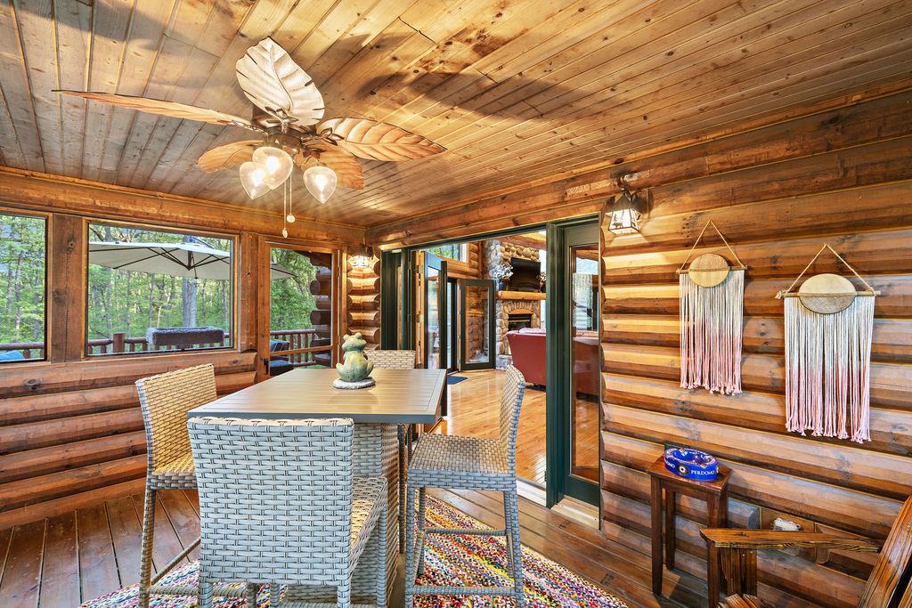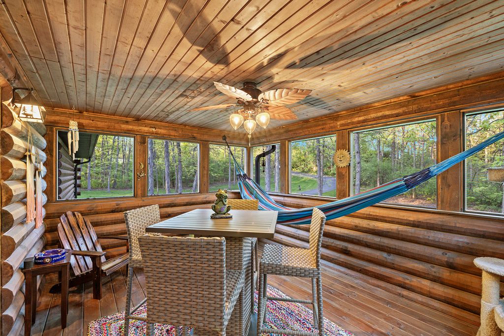 Welcome to W7611 County Road A - a stunning 4-bed, 3.5-bath log home on 5+ wooded acres. With over 4,650 sq ft, this home blends rustic charm and modern luxury. A grand, tree-lined driveway leads to manicured grounds and an inviting front yard. Inside, enjoy soaring ceilings, rich wood finishes, two impressive floor-to-ceiling fireplaces, a custom bar, and a top-tier theatre room. Roughly 1 mile of private walking trails wind through the woods on property. Just minutes from Whitewater Lake Turtle Lake and nearby nature preserves, this retreat offers elegance, comfort, and seclusion. Perfect as a year-round residence or a luxurious weekend escape, this one-of-a-kind property invites you to relax, entertain, and enjoy nature at your doorstep.