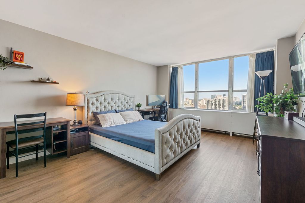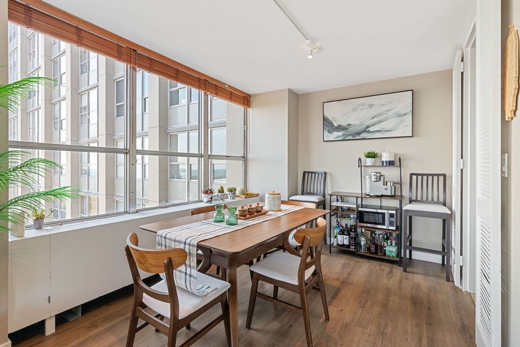 Open the door to sweeping views of Lake Michigan! This north and east exposure unit captures the magnificence of the lake, park, and harbor from every over-sized room. Living room is a stunner that will fit your largest parties. The kitchen features newer appliances and opens onto the ample dining area. King-sized primary bedroom looks to the lake with two walls of professionally organized closet space and en-suite bath. The second bedroom faces the lake with professionally organized closet space as well. A second family/guest bath, hall closets, and luxury vinyl in all the rooms completes the unit. Just steps from the lakefront. Enjoy amenities galore in this building. Pool, whirlpool, gym, basketball court, sundeck, grill/patio area, dog run, party room, and marketplace. Assessments include it all except electricity. Investor friendly with no rental cap. Building will be voting on upgrading elevators and plumbing risers in 2026. Management on site. Exceptional property.