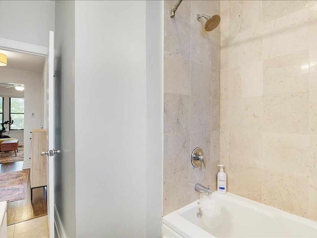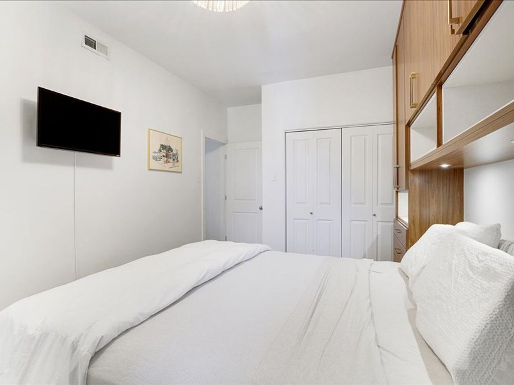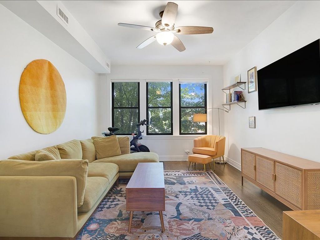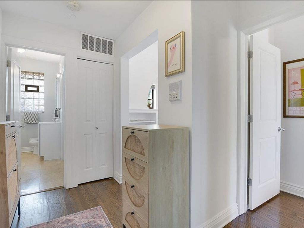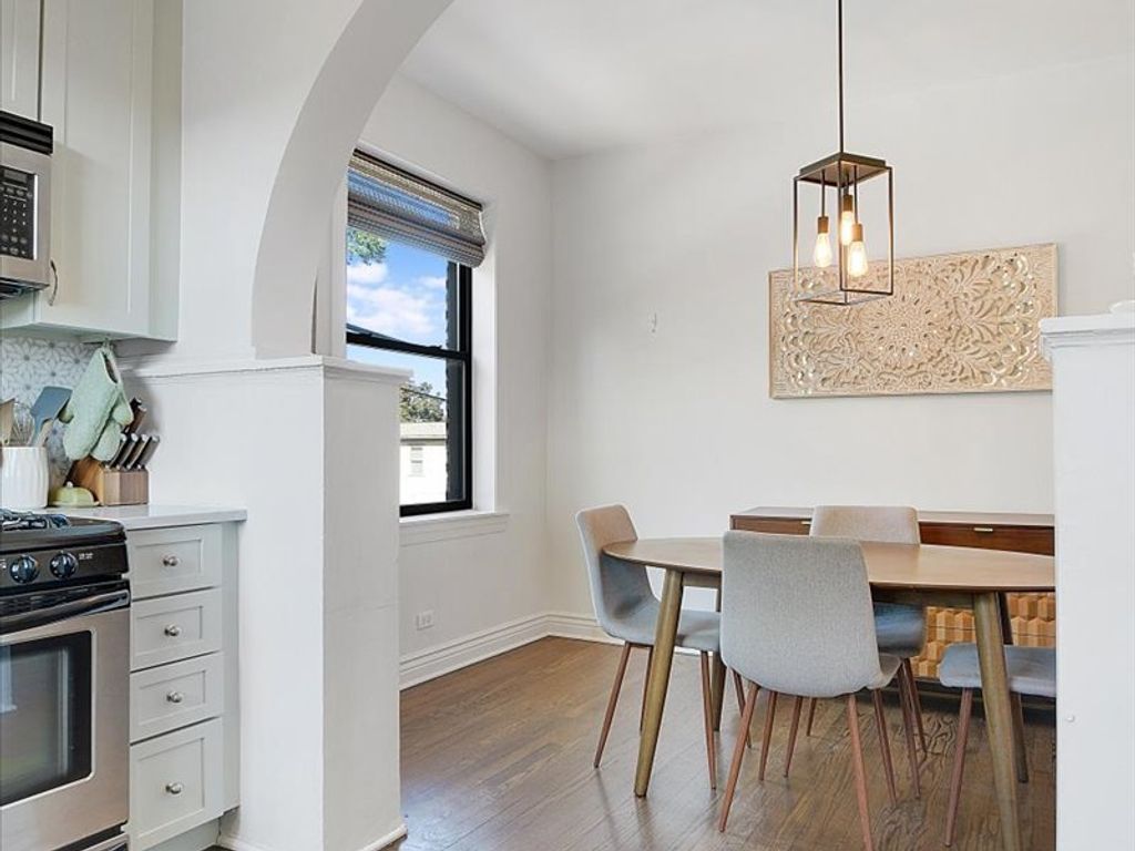 Enjoy this corner vintage 1 bedroom beauty in Logan Square. Covered with hardwood flooring, this home exudes charm and space. The kitchen is complete with granite counters, painted cabinets, funky backsplash, stainless steel appliances, and a Smeg refrigerator. The adjacent dining room is convenient for a relaxing meal. The large living room, is spacious and overlooks the tree-top views of the street. The bedroom includes added stylish built-ins that provide much needed storage. Where do you relax and take your coffee? Got you covered here, with the deck right off of the kitchen! Enjoy the greenery and urban life in Logan Square, with its' proximity to restaurants, shopping, parks and nightlife. Amazing food market every Sunday from Spring to Fall. Easy street parking. AC-2024; Furnace -2024; Hot water heater 2024; Washer/Dryer 2021; Smeg Refrigerator- 2021