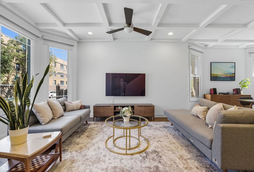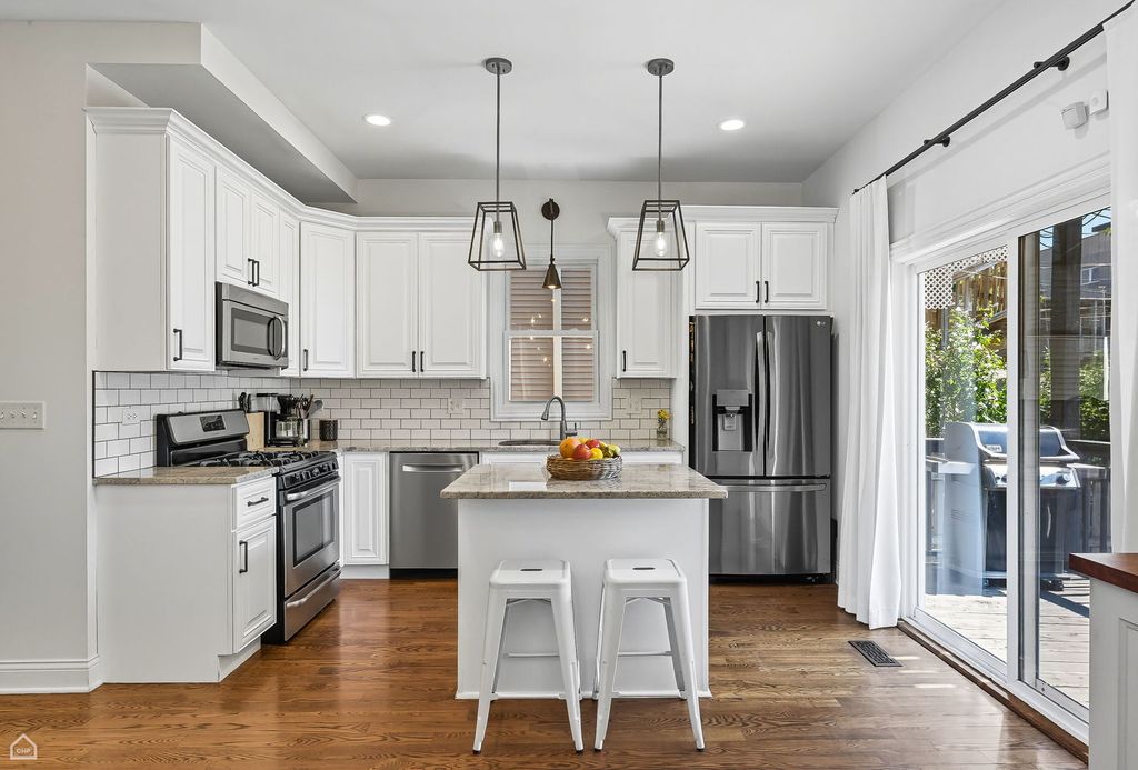 A true gem in Logan Square! This rarely available single-family home was fully gut-rehabbed in 2012 and further enhanced with thoughtful updates in 2021. Designed with style and care, it offers the perfect blend of comfort and function. The main level features a spacious living and dining area, flexible office or fourth bedroom, full bath, and a chef's kitchen with a large eat-in space, center island, Dry bar and direct access to the expansive yard. Upstairs, you'll find three generously sized bedrooms and a luxurious bath with double vanity, soaking tub, and separate shower. The lower level boasts a huge recreation room, full bath, and abundant storage. Fine details throughout include hardwood floors, coffered ceilings, granite counters, stainless steel appliances, natural stone tile, and custom millwork. Outdoor living is complete with a large deck off the kitchen, a balcony, a true yard, and a two-car garage. This home is as rare as it is spectacular-don't miss it!