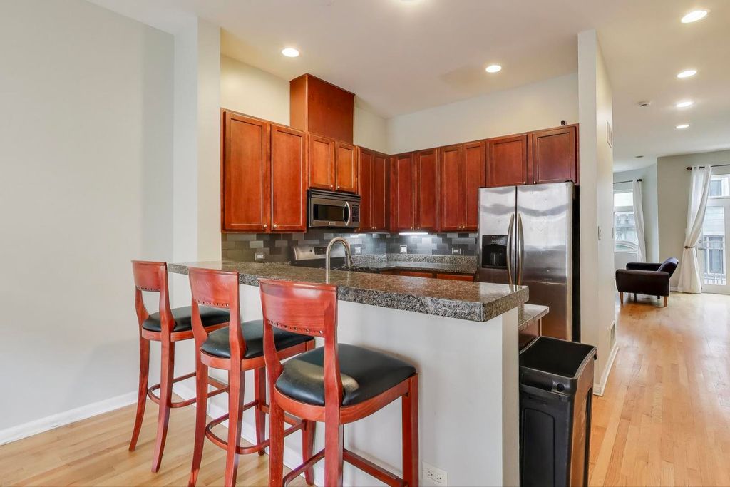 Stunning 4 bedroom 3.1 bathroom three-story contemporary townhome nestled in a small gated community in North Kenwood priced to sell! This townhome features a main level bedroom with its own en suite bathroom that is ideal for guests or an in-law arrangement. The second floor has an open floor plan with hardwood floors and features a living room with a gas fireplace and Juliet balcony, a dining room off the kitchen, an eat-in kitchen with a breakfast bar, granite countertops and stainless steel appliances and a shared balcony off the dining room area. The third level features three bedrooms including a nice sized primary bedroom suite with walk-in closet, full en suite bathroom and a private fairy tale style castle balcony! There is also a 2-car attached garage. You are conveniently located near the University of Chicago, Hyde Park and all it has to offer, Lake Michigan, Washington Park and much more. Don't miss this opportunity to own this townhome on a landmark street! Check out the 3D tour!