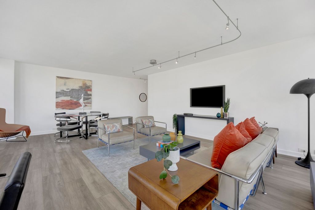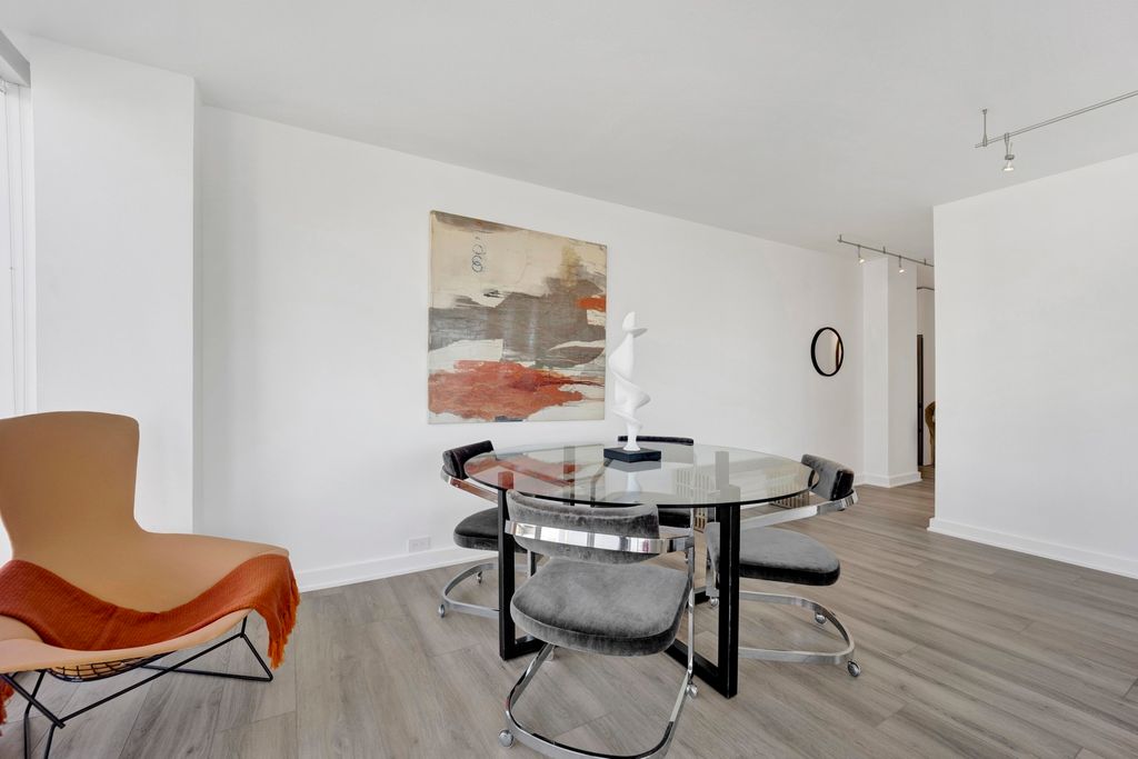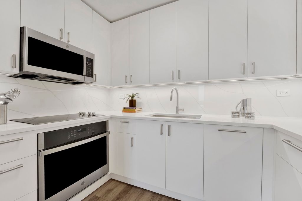 Fall in love with this newly renovated residence at Mies van der Rohe's iconic Commonwealth Plaza. The dramatic corner living room is bathed in natural light by day and glows with sparkling city views by night from two walls of floor-to-ceiling windows, creating an inspiring backdrop for both entertaining and relaxing. Thoughtful updates elevate the home throughout, including a sleek, brand-new kitchen with stainless steel appliances, updated bathroom features, luxe pale oak laminate flooring, updated lighting and chic window treatments. This is the one-bedroom you've been waiting for-modern, stylish, and move-in ready. Perfect as an in-town getaway, smart investment, or full-time residence depending on your needs. Strong condo association with amazing amenities and recent projects that enhance daily living, including the nearly completed surface and landscaping project of the pool and outdoor plaza areas and recently renovated party/hospitality room. This is an A+ location for public transportation and the best that East Lakeview has to offer, with proximity to lakefront trails, Diversey Harbor, Broadway and Diversey retail and nightlife corridors and more. Broker-Owned.