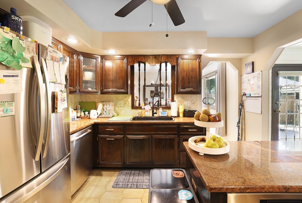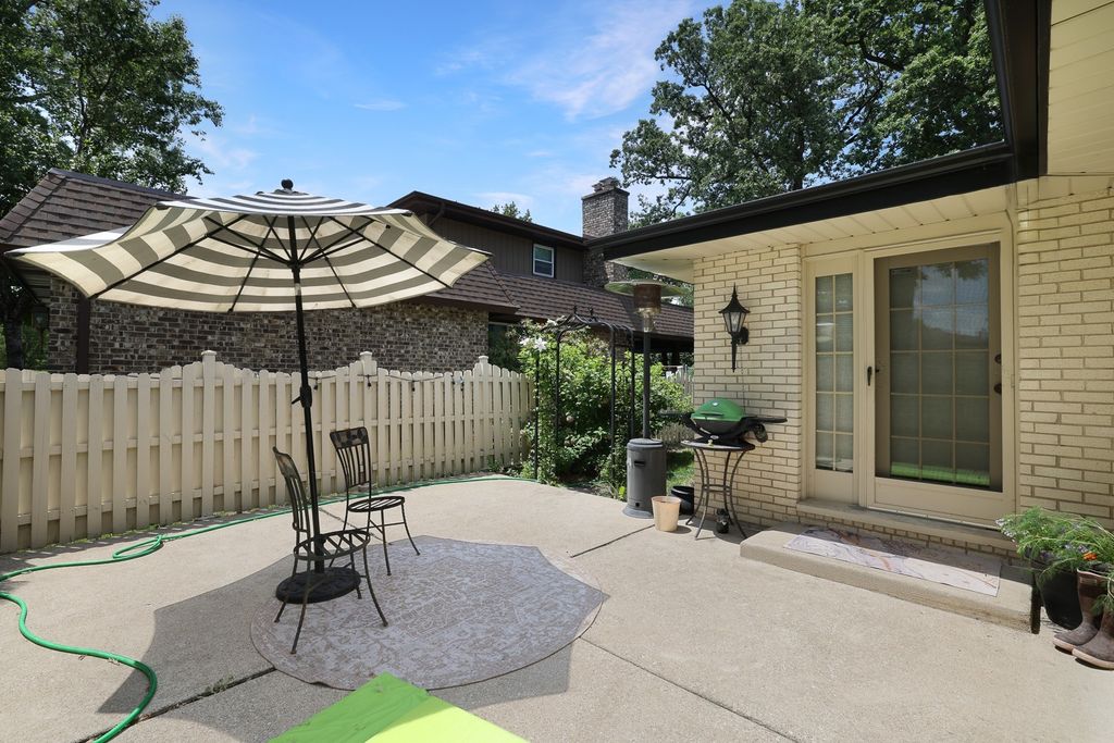 Spacious 4-bedroom, 2-bath tri-level in Whispering Oaks, tucked on a quiet street backing the forest preserve. This home offers multiple living areas, a formal dining room, and a bright eat-in kitchen with granite counters, stainless-steel appliances, and breakfast bar. Highlights include a vaulted cedar sunroom, lower-level brick fireplace with wet bar, and new terrazzo flooring. Freshly painted inside and out with newer roof (2019), whole-house generator, water heater (2022), and more. Outdoors features landscaped grounds, fenced patio with dog run, side yards, and circular driveway. Heated 2.5-car garage with storage and extra fridge included. While move-in ready, this property is a true diamond in the rough - well cared for but waiting for your updates and personal touch to unlock its full potential. Convenient to parks, trails, shopping, dining, golf, and major highways. Schedule your showing today!