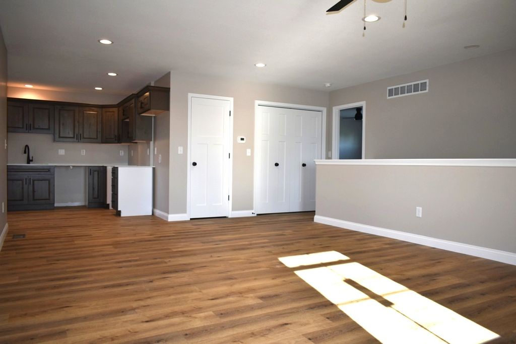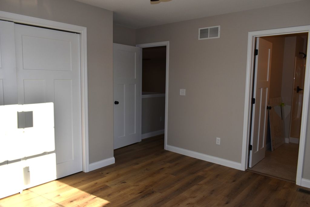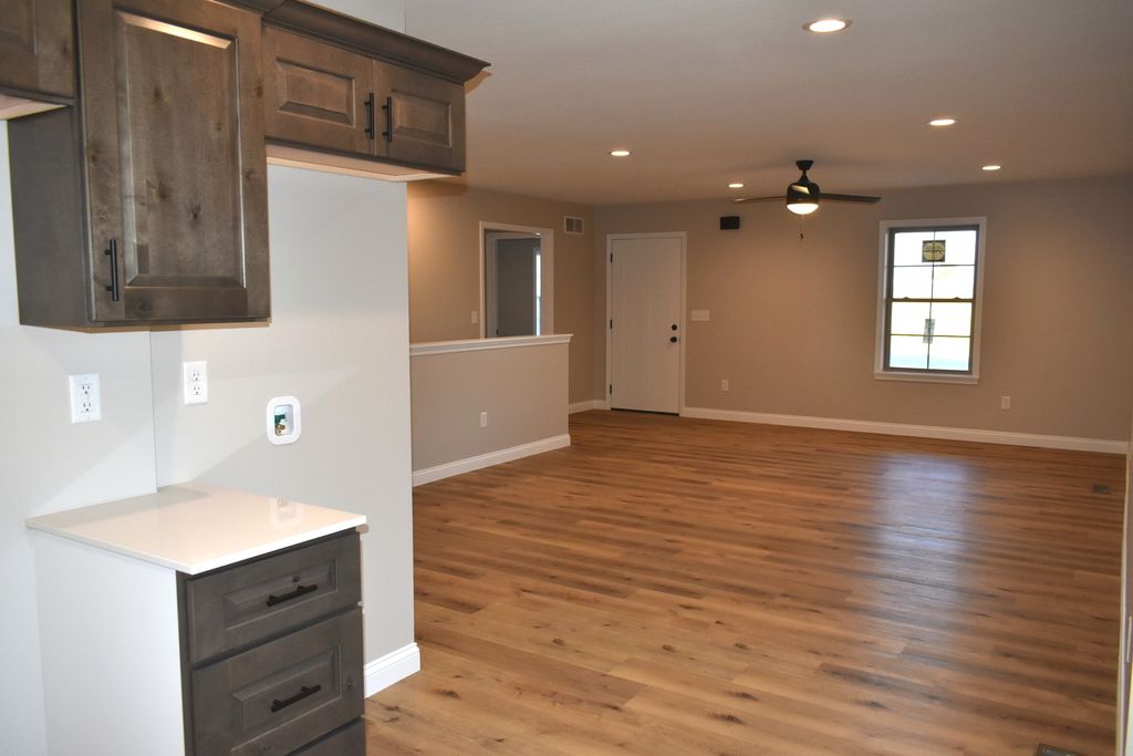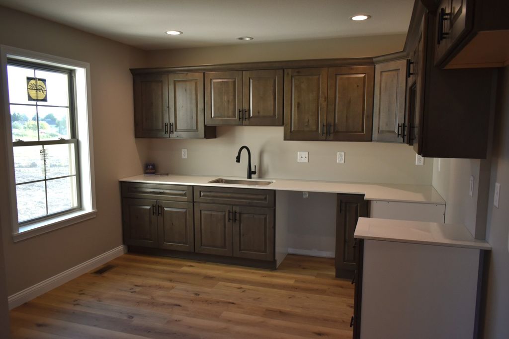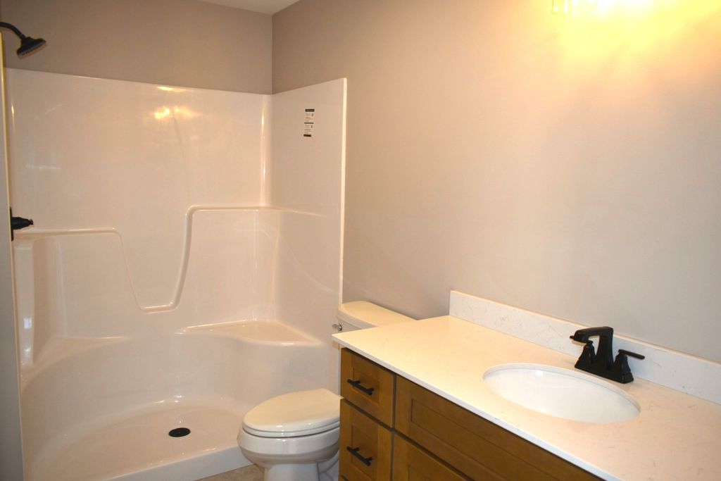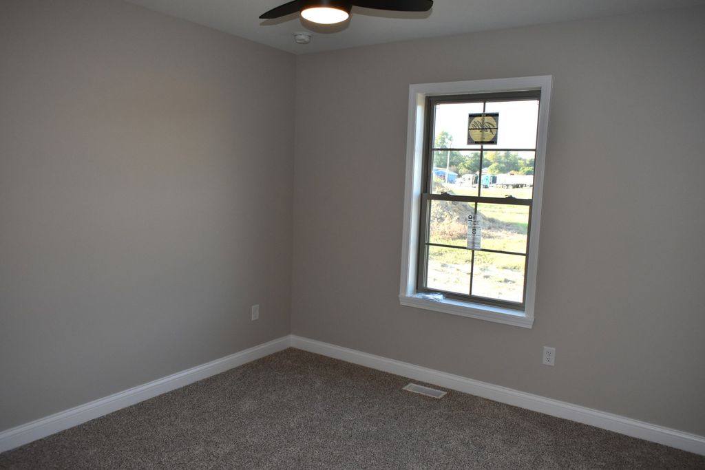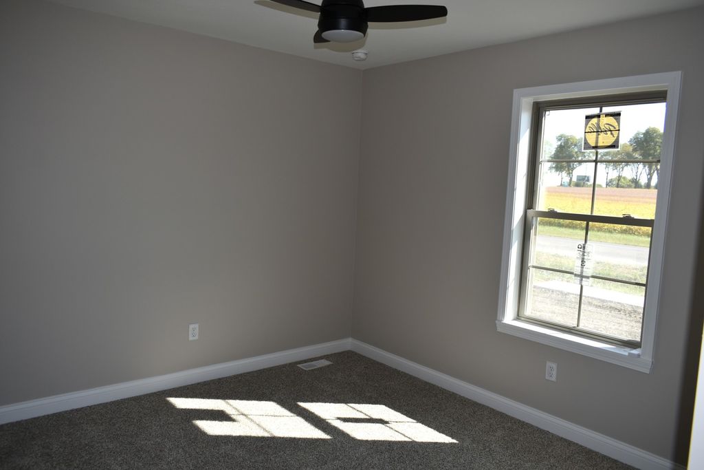 Quality built by local builder with better than average materials! Located in town, but with country views offering covered front porch facing east perfect morning coffee. Super open floor plan everyone wants, solid surface kitchen countertops & quality soft close cabinets with dovetail drawers, master suite with walk-in shower, main floor laundry, full basement w/egress window & rough-in for bath whenever you're ready to finish the basement! Private patio in back for grilling & relaxing. Seller will seed lawn this fall.