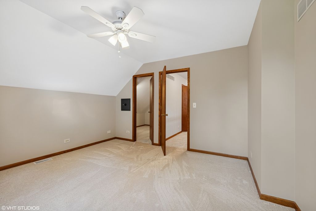 Contemporary style seamlessly blends into the natural landscape with this lovely custom home, nestled on a dead-end street in the sought-after Highland Glen subdivision. Unique floorplan highlights a main-floor primary suite featuring a wall of windows overlooking the private & lush backyard landscape and deck. The skylit spa-like ensuite offers a double-sink vanity, soaker tub, separate shower, and walk-in closet. Perhaps even more impressive is the enormous window-filled heated sunroom. The fabulous space features walls of windows, a vaulted/cathedral ceiling with a skylight, a built-in dry bar, a fireplace, and sliding glass doors to the deck (composite/no maintenance), providing complete privacy. Additional highlights include the spacious kitchen with sun-filled eating area and glass door entry to a unique private front patio (great for outdoor dining and grilling). The vaulted living room with separate dining room features gorgeous window views of the landscape, another skylight, and a stunning brick fireplace. The second floor includes two large bedrooms, an enormous walk-in hall closet with an additional entry from the second bedroom, a walk-in attic with a door for great storage, & renovated large hall bath with a new double-sink vanity/toilet/& tiled flooring. The basement features a finished rec room, a separate area for a workout space/den/office, a large storage room, and a full bathroom. Stunning sun-filled home with awesome floorplan...located in the Highland Glen Subdivision...near I-90, Randall Rd.! RARE OPPORTUNITY TO OWN IN THIS CUSTOM HOME SUBDIVISION! LISTING AGENT HAS INTEREST.