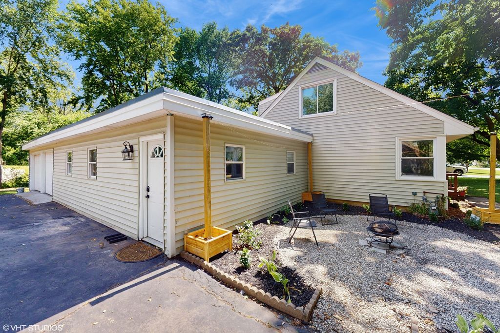 This gorgeous home is just steps from the charming shops and restaurants of downtown Libertyville and right across the street from scenic Independence Grove and the Des Plaines River Trail. Located in unincorporated Libertyville, you'll enjoy the benefit of LOW taxes while still having city water and sewer service. Inside, you'll find a beautifully updated interior, starting with a remodeled kitchen (2023) featuring stainless steel appliances and granite countertops. Over the past year, three full bathrooms have been renovated, and luxury vinyl plank flooring has been installed throughout the first floor. A brand new HVAC system and A/C unit ensures year-round comfort and efficiency. The main-level primary suite includes a private full bath, while three additional bedrooms are located upstairs. All of this sits on a serene and private .4-acre lot in the quiet North Libertyville Estates subdivision - a hidden gem in an unbeatable location!