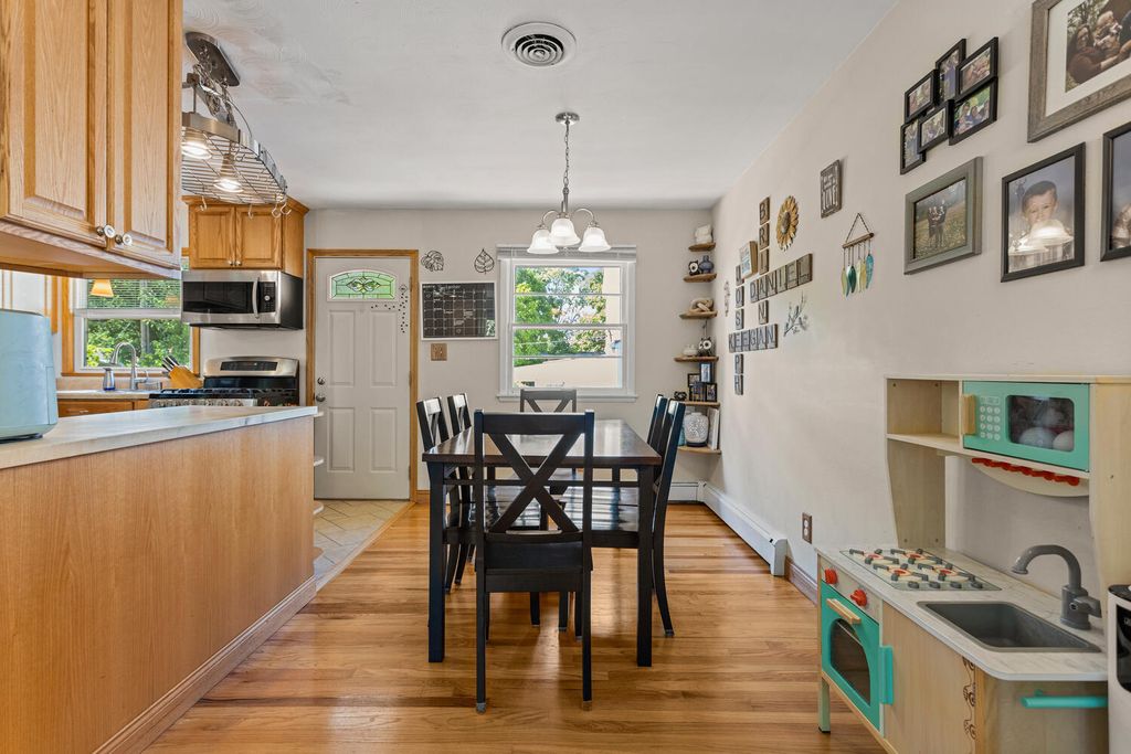 Completely remodeled kitchen with beautiful cabinets, counters, and stainless steel appliances. Ample amount of cabinet and countertop space for prepping and cooking. Deck access off of the kitchen to enjoy the fenced backyard area. Large living and dining area on the main level with hardwood flooring throughout. Access to the lower level from inside the home and from the garage. Full bathroom on lower level with laundry, bedroom, and office along with great area for family room. Larger two car garage which is also hard to find for this neighborhood. Numerous updates including a new boiler and tankless water heater in 2023, A/C unit in 2022 and new roof and radon mitigation system in 2020.
