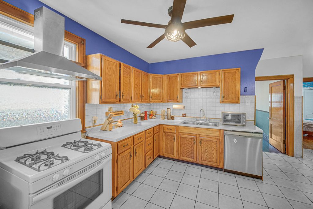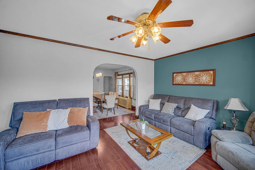 Beautifully maintained brick octagon bungalow featuring four bedrooms, two on the main floor, one in the fully finished attic with a versatile open space ideal for an office or TV room, and one in the finished basement with a full bathroom. The home also offers a back mudroom and a 1-car garage with an additional carport. Highlights include stunning leaded glass front windows, newer windows throughout (2019), and gleaming hardwood floors on the main level. This home has been meticulously cared for and thoughtfully updated, including a rebuilt back porch (2025), remodeled basement bathroom (2021), carport addition (2018), and backyard paver flooring (2023). Ideally located near shopping, public transportation, forest preserves, and expressways-all within a highly rated school district.