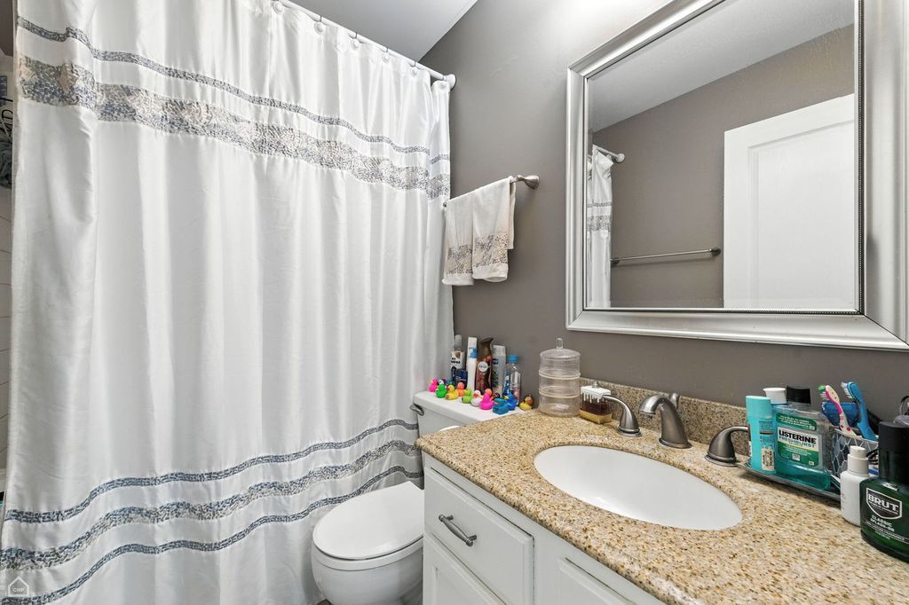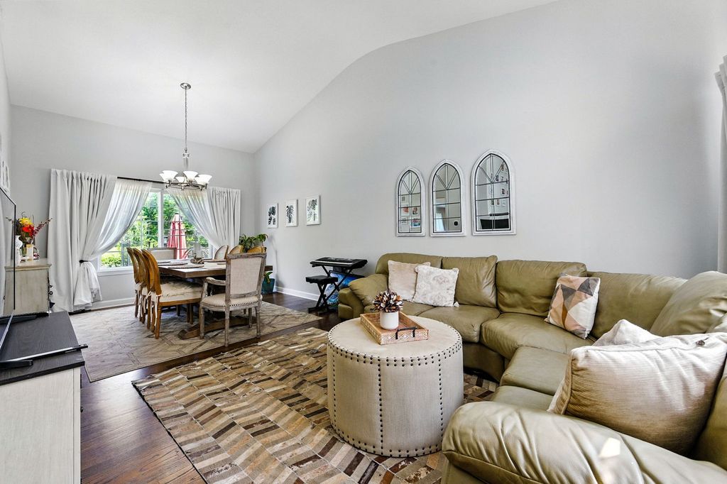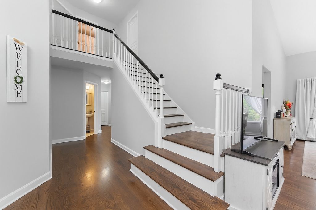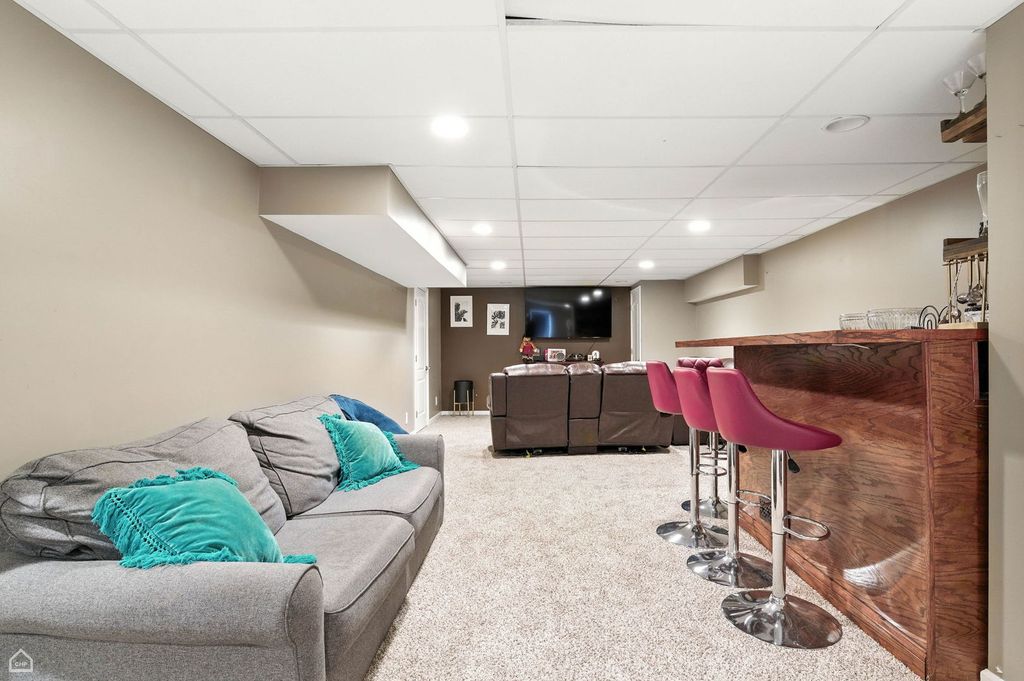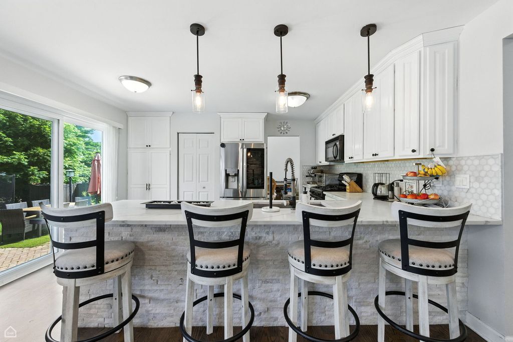 Exceptionally designed 3 Bed /3.5 bath home with an open floor plan, high ceilings, hardwood floors throughout the first and second levels. Modern kitchen features quartz countertops, peninsula with space for four stools, newer fridge (2024), ample cabinetry, and pantry. Living room includes a natural stone accent wall, fireplace setup, and flows into a dining area with sliding glass doors, and backyard views. Main-floor powder room with bold designer finishes. Wide open staircase will take you to the 2nd level when you will find primary suite offers a walk-in closet, and a bright bath with SKYLIGHT, soaking tub, walk-in shower, and dual vanity. Upstairs offers two spacious bedrooms and a full bath, ideal for family or guests. The FINISHED BASEMENT adds a bar, fridge, full bath, newer carpet, and ample storage - perfect for entertaining or relaxing. Outside, enjoy a fully fenced yard with a WODED VIEW. The school bus stops in front, with school just 4 minutes away. Playground across the street and shops within 10 minutes complete the convenience. Furniture negotiable. WELCOME HOME!