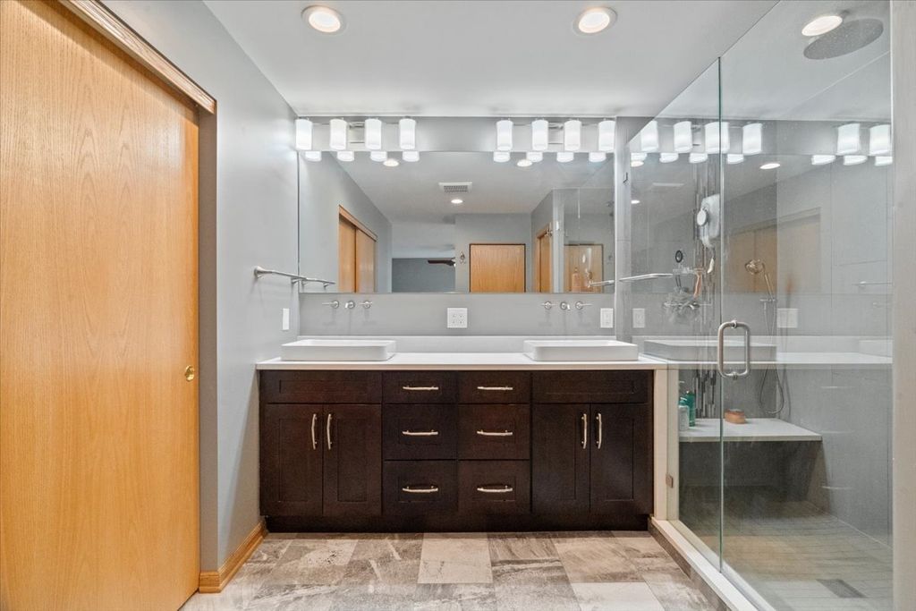 Welcome to this spectacular home located in sought after Longmeadow Estates! Tucked away on a spacious cul-de-sac lot, this home offers the perfect blend of style, space, and updates throughout. Step into the grand two-story foyer, where a dramatic staircase and an abundance of natural light set the tone. The elegant living and dining rooms are flooded with sunlight from the home's numerous windows, creating a warm and inviting atmosphere. The open-concept layout flows seamlessly into a cozy family room and chef's kitchen, featuring an impressive amount of cabinetry, new granite countertops, a custom tile backsplash, farmhouse sink, and a generous eat-in area-perfect for everyday living and entertaining. Throughout the home, you'll find beautiful hardwood floors and recessed lighting. Upstairs, the primary suite is a true retreat, complete with a walk-in closet and a fully remodeled spa-like bathroom with a custom dual-person shower and Kohler vessel sinks. Three additional bedrooms are equally well-appointed, featuring hardwood floors and thoughtful design-move-in ready. The updated hallway bath includes a double vanity. All major updates have been completed within the past 5 to 7 years for your peace of mind, including: New roof, a/c, furnace, water heater, sump pump, electric panel, driveway, garage door, tracks and opener motor. Soak up outdoor living with a charming brick paver patio just off the kitchen-ideal for summer BBQs-and a spacious side yard with room to run, play, or relax. Enjoy the new Longmeadow park, complete with multiple play areas, pavilion, pond for fishing and scenic walking trails. Located just minutes from several more local parks, Barefoot Bay Aquatic Center, Fremont Library, Mundelein High School, Super Target, and Starbucks-this home truly has it all. Don't miss your chance to live in Longmeadow Estates!