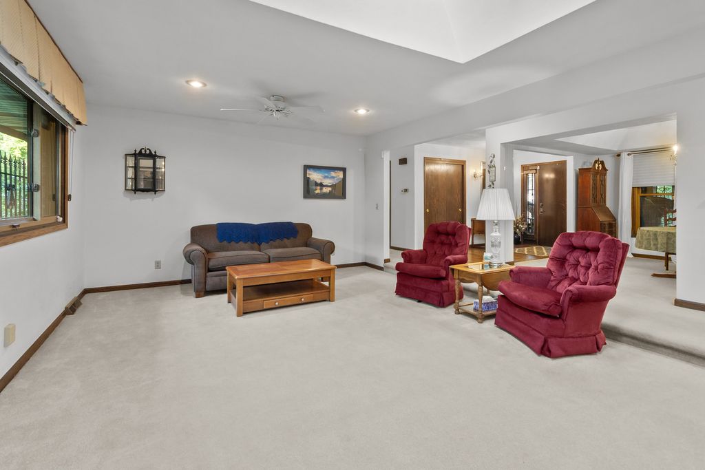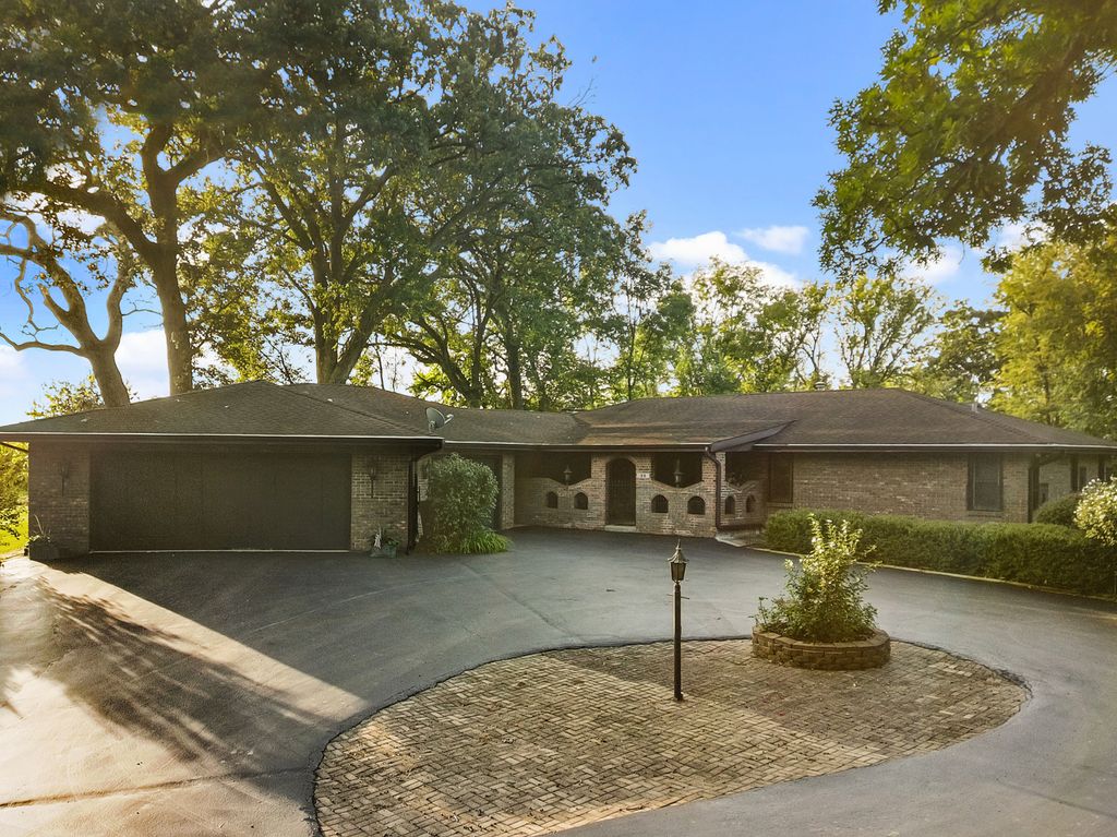 Unique, secluded, all brick ranch on nearly an acre. Nestled among towering oaks find this lovely sprawling home. 3 bedrooms on main floor with 2.5 baths. Open floor plan is perfect for entertaining. Living Room w/ Stone Wall & WB Fireplace. Formal Dining. Cozy, heated 4 season room adds to the living space. 1st floor laundry. Finished basement with family room, pub style seating and cabinet area with permitted escape window for added safety along with a bonus room. Small den/office too. More bsmt features includes large storage area and surprise indoor range. 3.5 car, heated garage with workshop/benches. DON'T MISS THIS OPPORTUNITY!