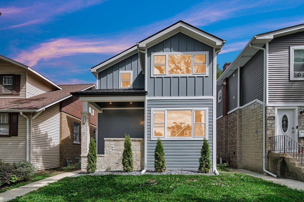 Beautifully Rebuilt Home featuring 4 bedrooms-one conveniently located on the main floor and three on the second level. The primary suite offers an additional sitting/living area, providing extra space for comfort and relaxation. This residence includes 2 full bathrooms and an open-concept design that seamlessly connects the kitchen, dining, and living areas. The kitchen boasts high-quality cabinetry, quartz countertops, and brand-new stainless steel appliances. The fully finished basement offers a warm, inviting family room-ideal for gatherings, entertaining, or quiet evenings at home. Step outside to enjoy a spacious deck and beautifully landscaped backyard, perfect for outdoor living. Additional highlights include a two-car garage and durable Hardie Board exterior, ensuring both style and longevity.