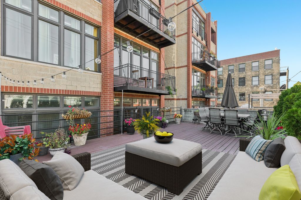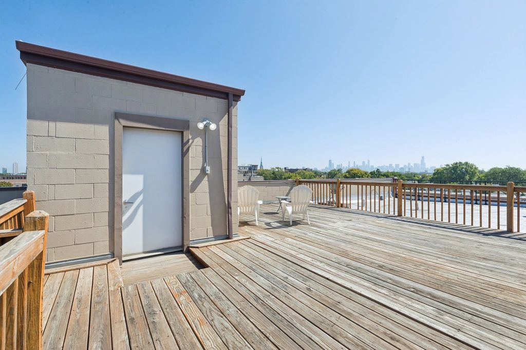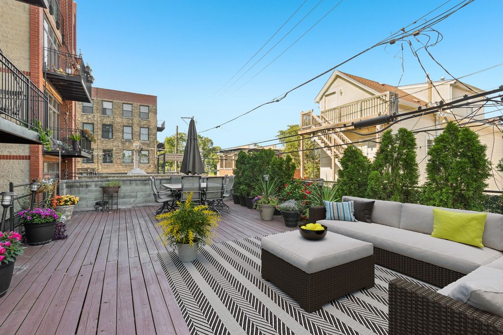 Welcome to this Expansive 2BR 2BA with Open Floorplan and a Huge Fabulous Private Deck (Refinished 2022)! Exceptional Newer Building in One of the Area's Most Desirable Locations of Roscoe Village / Lakeview. Gleaming Hardwood Floors, High Ceilings, Exposed Brick and Fresh Paint (Sept 2025) Welcome You to this Rear Main Floor Unit. Updated Open Kitchen Features Island with Bar Seating, 42" Cabinetry, 2020 Quartz Counters, Subway Tile Backsplash and Stainless Steel Sink/ Faucet & Appliances. Adjacent Spacious Eating Area Offers Plenty of Room for Entertaining. Enjoy the Welcoming Respite of the Living Area Featuring a Brick Fireplace, Wall of Windows with Custom Remote Blinds and Views to the Spacious Deck! Bedrooms Feature Continued Hardwood Floors, Canned Lighting, Plentiful Closet Space plus Overhead Storage. Both Baths are Well Appointed with Cabinetry, Tub/Showers. Murphy Bed and In-Unit 2024 Washer & Dryer are Features You Will Appreciate! Furnace 2022 Hot Water Heater 2022 AC 2020 Disposal 2020 are Recent Updates to Assure Piece of Mind. Resurfacing of roof 2024 too! Convenient Elevator Building Also Features Storage Room w/ 6 x 3 Private Storage Closet, Rec Room w/ Ping Pong, Exercise Room and Shared Rooftop Deck with 360 views! Heated Garage Parking Caps off Your List of Must Haves to Make this the Perfect New Home For You! Convenient to Brown Line, Blue Line, bus routes and a Myriad of Shopping and Restaurants. Ideally situated in highly sought after vibrant Roscoe Village community with extensive array of charming boutiques & cafes, fests and fairs. Enjoy nearby green spaces offering parks, playgrounds, picnic areas, sports fields, pool and pet-friendly areas. City Life At Its Best! COME SEE SAT SUN 10/4 and 10/5 12-2PM.