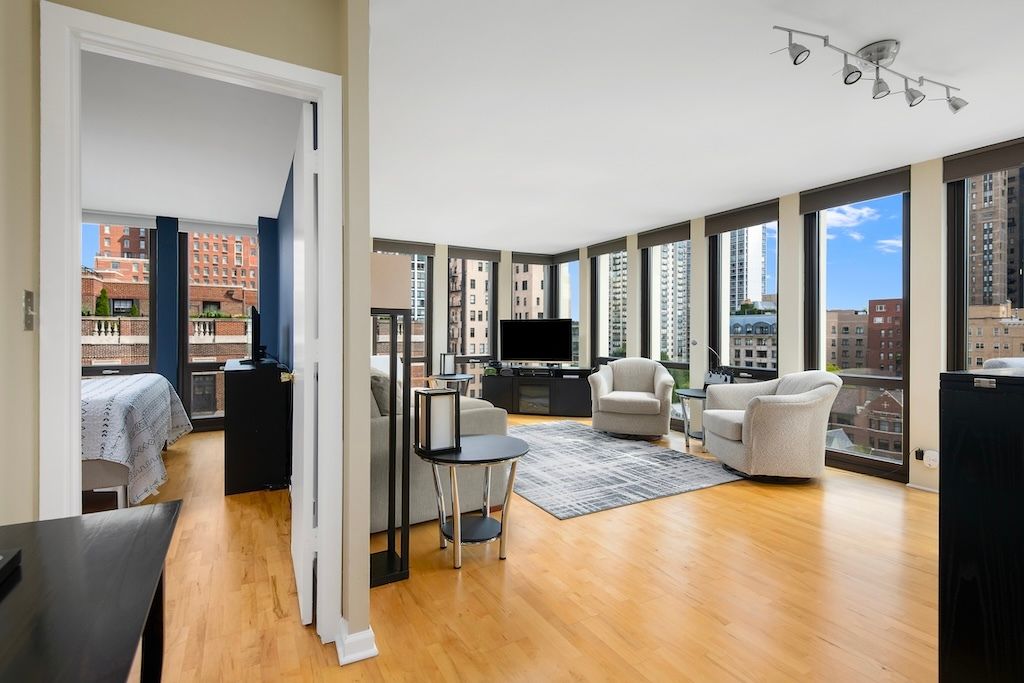 Incredible lake and city views from this bright corner 1 bed/1 bath condo in the heart of the Gold Coast! The open-concept kitchen features white cabinetry and granite countertops, flowing into a spacious living area with light engineered flooring throughout. The generously sized bedroom offers a large, custom-organized walk-in closet. Available fully furnished! This well-managed building has all-new windows (2018), updated hallways (2022), and strong reserves. Amenities include a 24-hour doorman, outdoor rooftop pool and sundeck, bike room, and on-site management. Monthly assessments cover heat/AC, cooking gas, cable, and internet. Garage parking is available for rent through the HOA. Investor-friendly with no rental restrictions. Cat-friendly. Unbeatable location, steps to the lakefront, Rush St. and State St. dining, the Red Line, and Jewel!