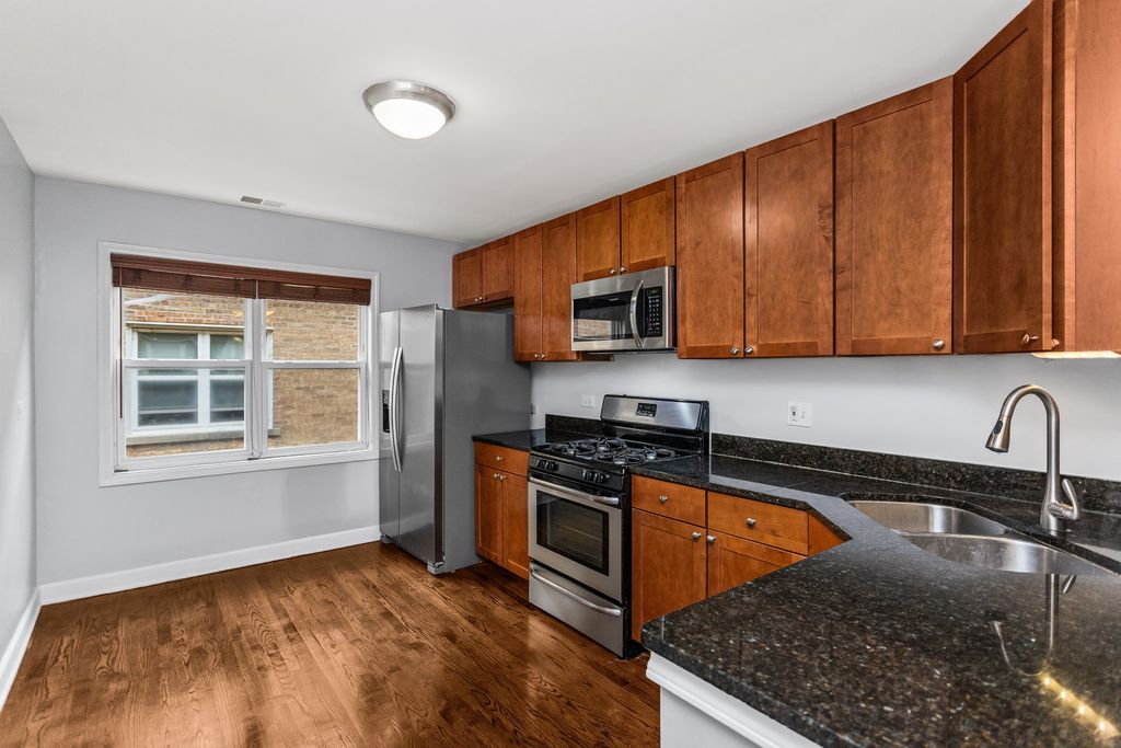 Tucked inside a beautifully landscaped, gated courtyard, this spacious 3-bedroom, 2-bath corner condo offers the perfect balance of privacy, comfort, and convenience. The inviting layout features great natural light throughout, and a private balcony is an ideal spot to enjoy your morning coffee or unwind after a long day. The kitchen is equipped with stainless steel appliances and opens nicely to the main living area, where plush carpeting adds a touch of comfort (with laminate hardwood underneath, as well as in the kitchen and second bedroom). The primary suite features an updated bath with a double vanity and a tub-shower combination, while the second bath includes an oversized shower perfect for guests or busy mornings. Additional features include in-unit laundry, central air, generous closet space, an assigned storage room, and gated parking. Conveniently located near the Peterson/Ridge Metra stop, this home offers easy access to downtown and all the best of Chicago living.