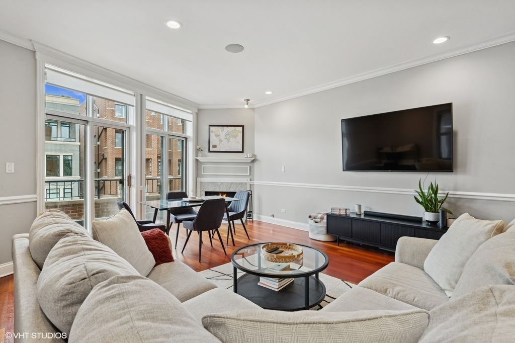 Great value 2 bed, 2 bath unit in Lincoln Park with 2 outdoor living spaces! Large open floor plan welcomes you in with beautiful solid hardwood flooring throughout. Large kitchen boasts granite countertops, custom tile backsplash, stainless steel appliances, and center island with extra barstool seating. The open living room, dining area and front balcony are perfect for entertaining. Spacious primary with walk-in closet and ensuite bathroom, featuring large double vanity, soaking tub and separate walk-in shower. Large second outdoor living space located off the primary, but also with separate hallway access. 2nd bedroom is perfect for hosting guests or your home office, with 2nd full bathroom with walk-in shower conveniently adjacent. In-unit washer/dryer. Two covered tandem parking spaces included, plus extra storage closet in basement. All brick building! Amazing location with easy access to 90/94, El and Metra stops, and Clybourn Corridor, Lincoln Park/ Bucktown/ Logan Square shops, restaurants and bars!