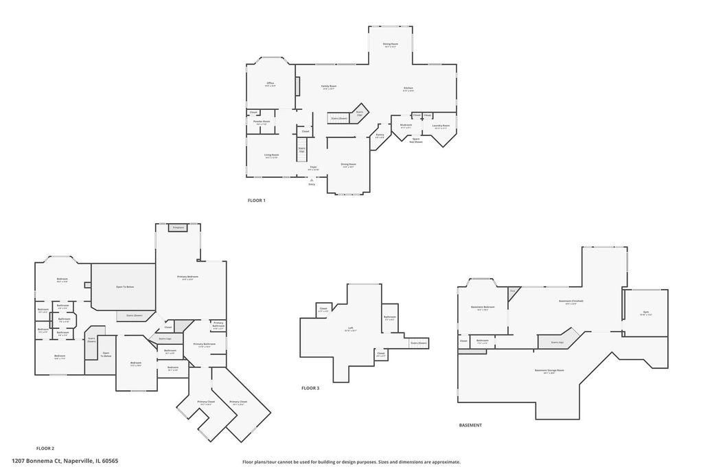 Set on a quiet cul-de-sac in prestigious Bonnema Woods, this grand east-facing all-brick residence offers an exceptional layout and elevated finishes throughout. With 6 bedrooms, 5.5 bathrooms, and over 8,500 square feet of beautifully finished living space, this home blends timeless craftsmanship with modern flexibility. A dramatic 2-story foyer welcomes you into the spacious formal living and dining rooms-perfect for elegant entertaining. The gourmet kitchen features high-end appliances, granite countertops, a large center island, a walk-in pantry, and a generous space that can be used as a separate eating area or a cozy sunroom. This all flows into the two-story sun-drenched family room with a fireplace and expansive backyard views. A private first-floor office offers warmth and character with a fireplace and sits adjacent to the half bath. Upstairs, the luxurious primary suite boasts a separate seating area with a fireplace, spa-like bath, and space for dual walk-in closets OR a second office/loft space. The other three bedrooms are all generously sized, with walk-in closets and en-suite or Jack-and-Jill baths. The third-floor loft, listed as the 5th bedroom, features another full bath and is a versatile space perfect for a theater room, game room, play area, or nanny quarters. The lookout English basement includes another fireplace, a full wet bar with seating area, a rec room, fitness area, abundant storage, and a secondary staircase with direct access to the garage. The elevated deck provides tranquil views of the wooded 1/2 acre backyard. Ideal for relaxing, dining, or entertaining with a lower level brick paver patio. Located in top-rated District 203, with attendance at Naperville Central High School, and just minutes from downtown Naperville, forest preserves, parks, and trails. New Furnace (2022 and 2018) and AC (2016 and 2022). New Roof (2020).
