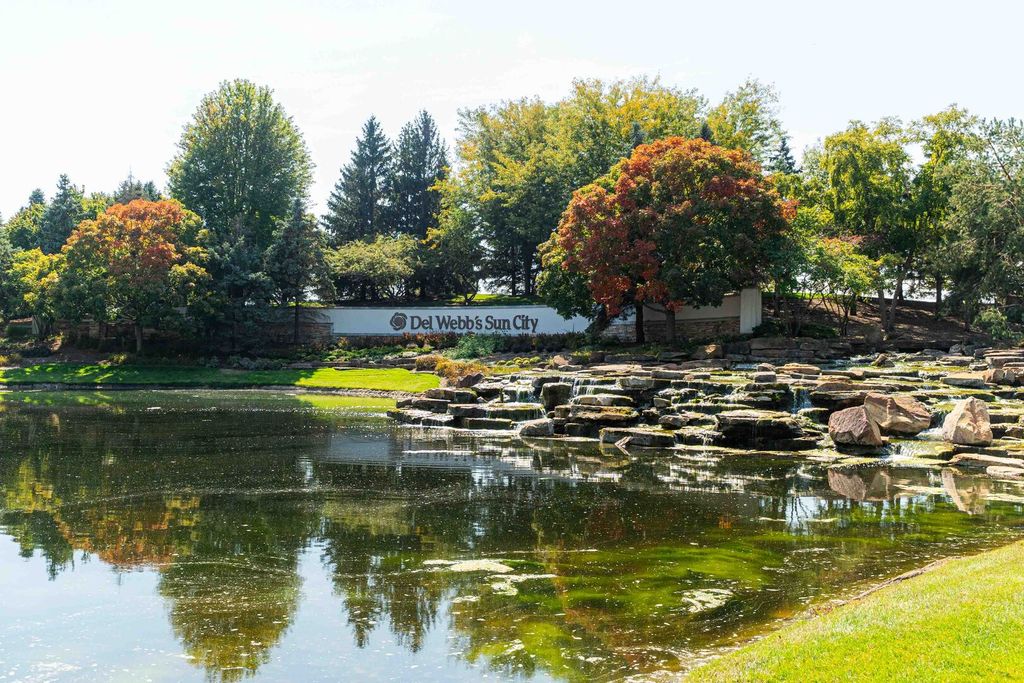 Well maintained ranch home located in the gated 55 and older in Highly Desirable Del Webb Sun City Community, which offers pools, golf course, tennis courts, steakhouse house restaurant, and much More! This two bedroom with a first floor office / study, includes two full bathrooms (1/2 bath roughed in basement), and a full unfished basement! Master bedroom offers a bay window - roomy bath - and a walk in closet. Custom vertical and pleated blinds thru-out. Open floor viewing kitchen / LR / DR / and Sun Room all in one glance. New Roof and gutters installed in 2019, new water heater in 2023, new sump pump in 2024, new front aluminum hand rail in 2024. Great location with sun room and living room looking down an open green area between rear homes. Upgraded elevation with front brick on exterior of home. Enter home to an open staircase to basement that currently offers a stair lift (seller will remove if buyer wants). Bright and airy floor plan (9 foot ceilings thru-out) offers tons of natural light. Kitchen offers raised panel oak cabinets, white appliances, and Corian countertops. 11ft x 10ft Sunroom really adds openness to the first floor with its many windows and access to the rear yard patio. First floor utility room has front loan washer and dryer and a utility sink, plus a service door to the garage. Huge unfinished basement has outside walls insulated - 1/2 bath roughed in - high efficiency gas furnace / water heater. As built, the home is equip with a sprinkler system. Driveway was widened on both sides with brick pavers for added exterior parking. Great Home - make your appointment to see it soon!