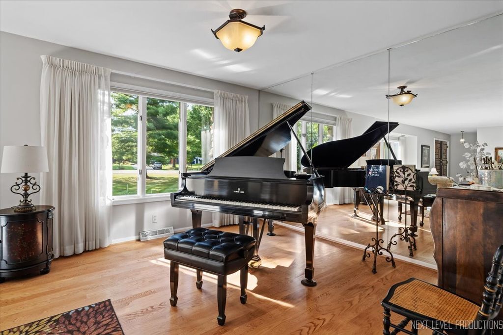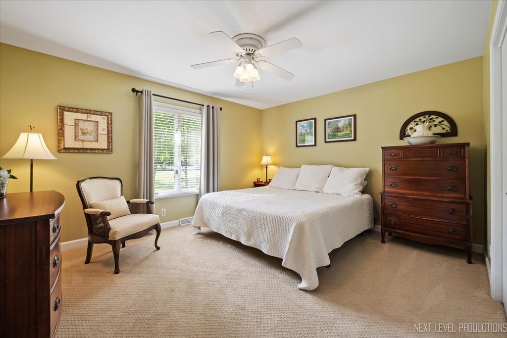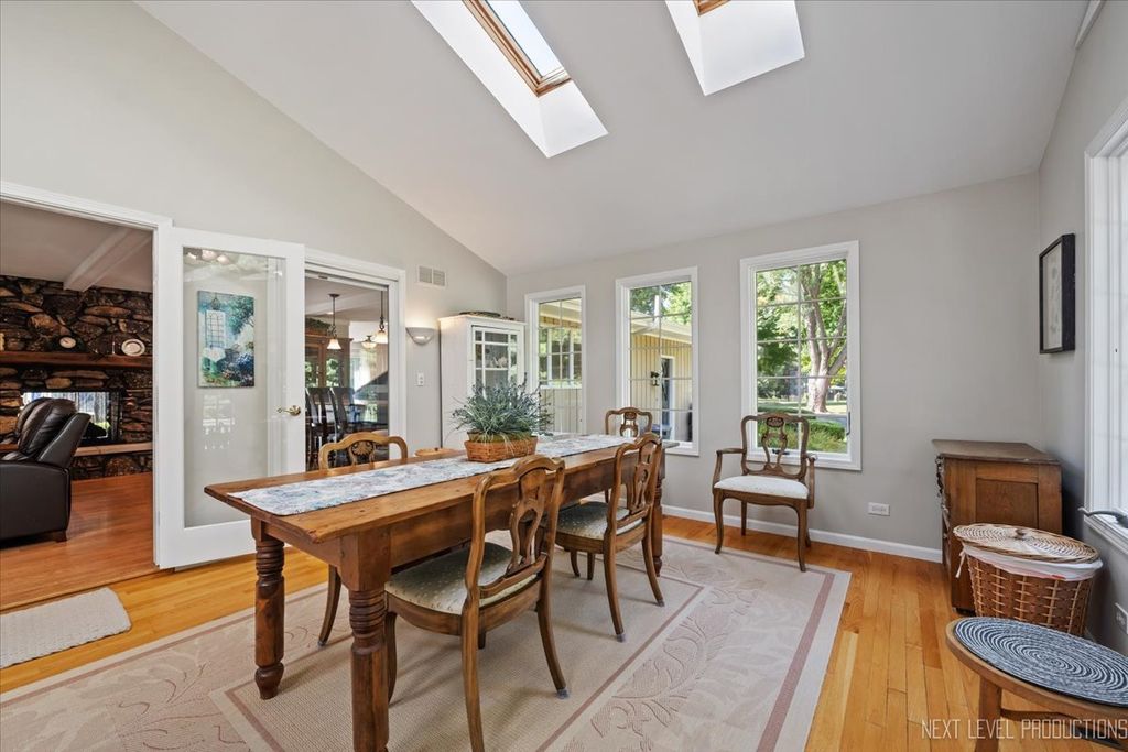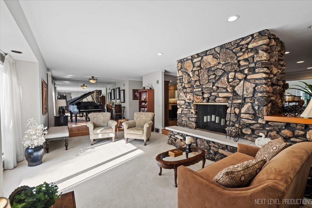 You need to see this Rustic & Charming Stone-Front Country Ranch on 1.33 Acres in the highly sought after Wild Rose Subdivision. D303 Schools & No HOA! Light & Bright interior with skylights, picture windows and neutral finishes. Enter the Living/Dining Room with the grand 2-sided Stone Fireplace and picture windows. The Gourmet Kitchen is open & inviting, with a peninsula eating area, stainless appliances, large granite surfaces, with under cabinet & can lighting, functional pull-out pantry shelves, ample cabinets and 2 "Lazy-Susan" corner cabinets. The cozy corner Family Room with Fireplace has hardwood floors & is open to the Kitchen. The 4 Season Sunroom is filled with natural light, is a cheerful, sun-drenched relaxing retreat & can be an extension of the Family room or entrance to the back deck with the beautifully landscaped, tree-lined private yard with open space. Take the hallway to the updated full guest Bath with skylights, double sinks & tub. The comfortably large Primary bedroom has sliding doors to the back deck, ensuite bath with walk-in shower. Also, 2 bedrooms with large closets. Walk down hardwood stairs to the finished basement which has 2 recreation rooms; a brick Fireplace, a Bedroom on one side and a game/exercise room with full bath on the other. Large Laundry/Utility/Storage Room with chute in bath closet & plenty of Storage Closets. The 2 car Garage has epoxy coating, cabinets, hooks, extra refrigerator that stays & door to back yard. Long Double Driveway with turning space. Updates include in Spring 2025:Back Deck Stained. 2024:Submergible Sump Pump & Septic Cleaned. 2021:Hot Water Heater. 2020:Kitchen Appliances. 2018:Washer & Dryer. 2015:Pella Primary Sliding Door & Window. 2014:Furnace & AC. 2013:Water Softener. 2000:Sunroom built with Andersen Windows. Roof has approximately 9 years left. This great Location is close to the Fox River & parks, Downtown St. Charles & town amenities.