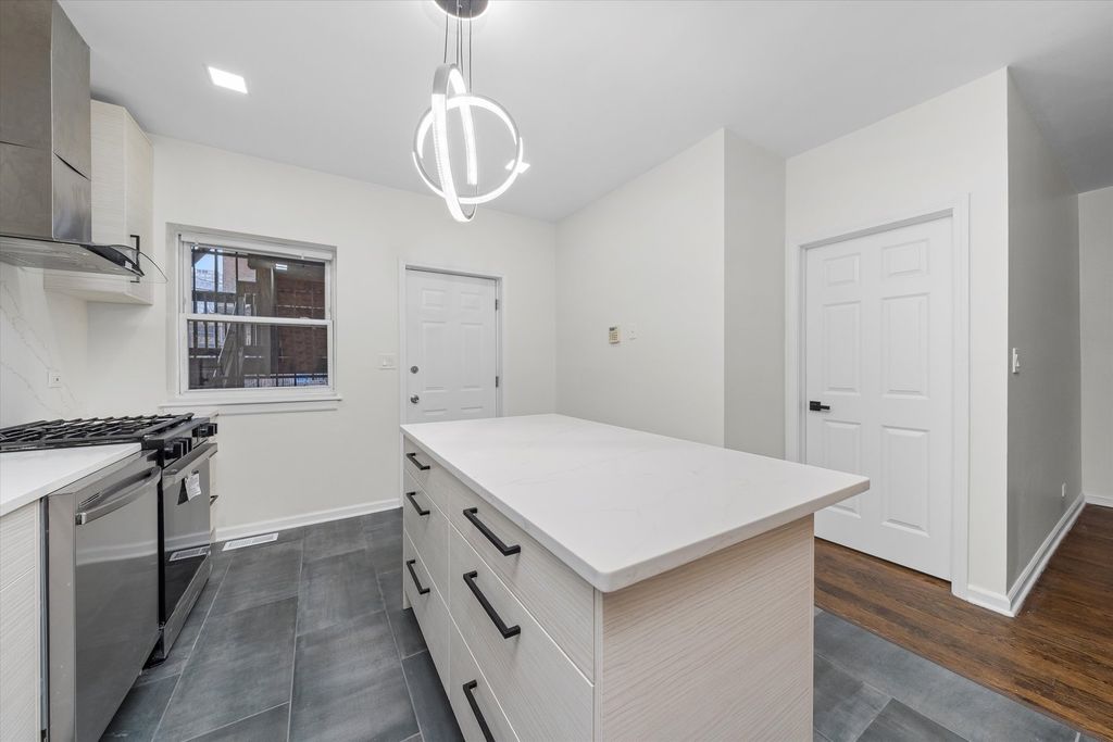 Welcome to 4734 S. Saint Lawrence, a one-of-a-kind duplex down in the heart of historic Bronzeville! This stunning 3-bedroom, 3-full bathroom condo seamlessly blends modern style with classic charm, featuring hip exposed brick and gleaming hardwood floors throughout. The main level boasts an inviting layout with a spacious eat-in kitchen, a separate dining room, and a deck-perfect for entertaining or enjoying your morning coffee. The lower level offers ultimate flexibility with its own private entrance, a large family room, a bedroom with two closets, full bathroom, and in-unit laundry. Plus, enjoy additional storage with extra storage rooms in the common area. Additional features include a gated parking space (north side) and rental-friendly options, making this an excellent home or investment opportunity. Located near shopping, popular restaurants, and everything Bronzeville has to offer-this condo is a must-see!