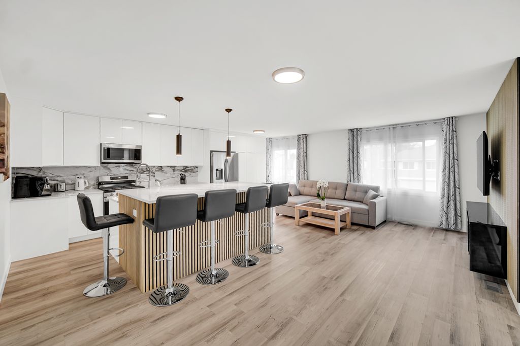 Welcome to the largest floor plan in the complex-a beautifully renovated duplex that feels like a designer model home. Every detail has been thoughtfully updated to combine modern luxury with everyday functionality. Step into a bright, open-concept layout featuring a stunning new kitchen with quartz countertops, a spacious island, and an abundance of soft-close cabinets with convenient pull-out shelves. The kitchen seamlessly flows into the living and dining areas, making it perfect for both entertaining and daily living. Enjoy all-new windows and doors, luxury flooring throughout with extra cork underlayment for added comfort, and elegant lighting that creates a warm, sophisticated ambiance in every room. This home offers three beautifully updated bathrooms, each featuring stylish tile, new vanities, and even towel warmers for a touch of spa-like comfort. The private backyard is ideal for entertaining or simply relaxing outdoors, while the enormous rec room offers endless possibilities-easily convert it into a fourth bedroom by adding just one wall and a door. Additional features include: 2-car garage Dedicated utility/laundry room Convenient under-stair storage Truly move-in ready condition Don't miss your chance to own this exceptional property-schedule your private showing today!