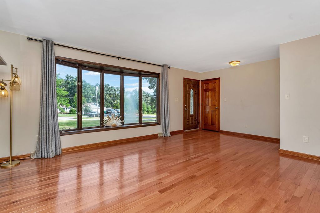 Nestled on a quiet dead-end street, this beautiful brick ranch offers peace, privacy, and serene views of mature trees and natural surroundings - backing to a wooded, open area in desirable unincorporated Homer Township (with low taxes!). Step inside to find a spacious, updated kitchen featuring a large island, stainless steel appliances, upgraded light fixtures, quartz counters, a pantry closet, and gleaming hardwood floors. The adjacent dining room, complete with French doors, opens to a stamped concrete patio, perfect for outdoor entertaining or simply enjoying the expansive, picturesque yard with its big garden. The light-filled living room boasts a charming bay window with modern accent wall, while the primary suite offers double closets and a tasteful private bath. Enjoy the convenience of main-level laundry, pull-down attic storage, and a full, partially finished basement with abundant storage space. An oversized, true 2.5-car garage adds even more functionality. Ideally located on a private road, this home offers a rare combination of seclusion and convenience - just minutes from the interstate and Metra for an easy commute.