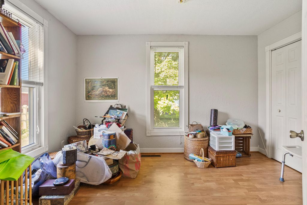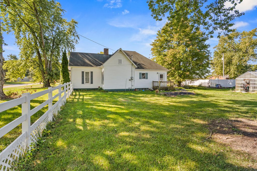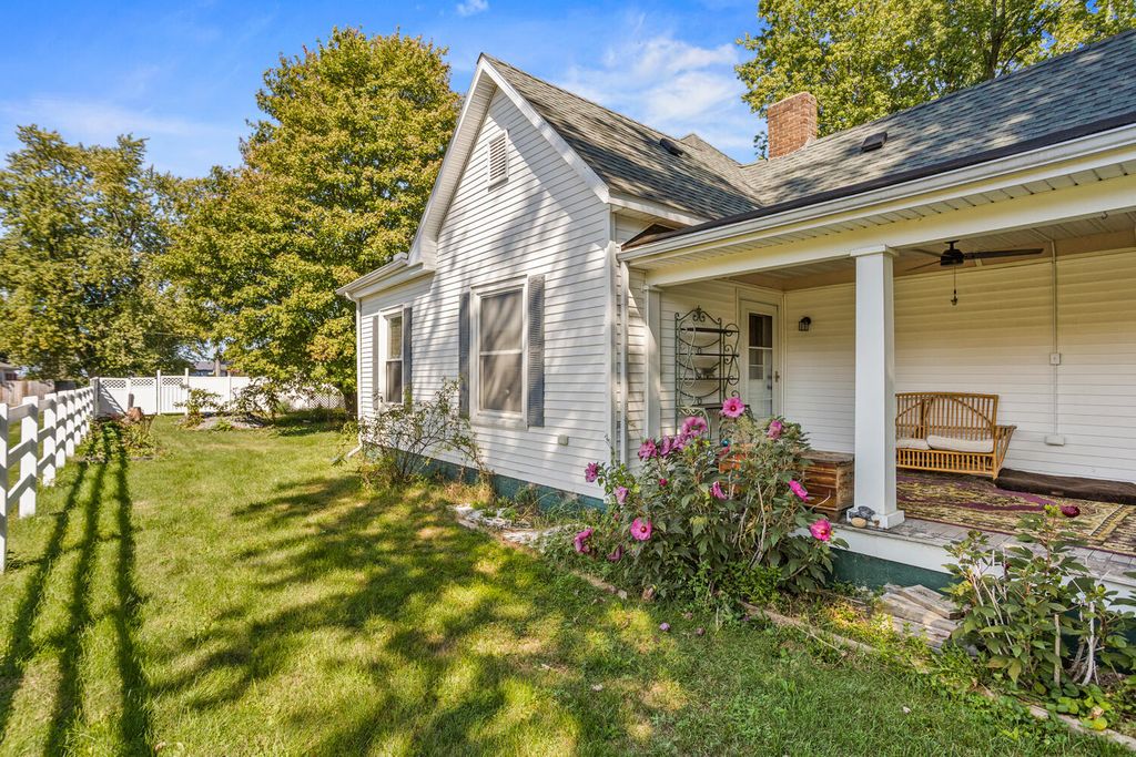 Charming ranch home on a spacious double lot with fantastic curb appeal! Featuring a classic white exterior, fenced yard, and a welcoming front porch, this 2-bedroom, 1-bath home blends character and function. Inside, you'll find a large separate dining room, a functional kitchen with a cozy breakfast nook-currently set up as a prep station, perfect for canning and preparing fresh produce from the gardens. The detached 2-car garage offers updated electrical. The backyard is truly a homesteader's dream with a greenhouse, small deck and patio, four flowerbeds ready for planting, and an abundance of established gardens. Nearly everything grown on the property is edible, from vegetables to over 100 flowers and herbs used for natural remedies and teas. A unique opportunity for garden lovers and anyone seeking a peaceful, productive lifestyle.
