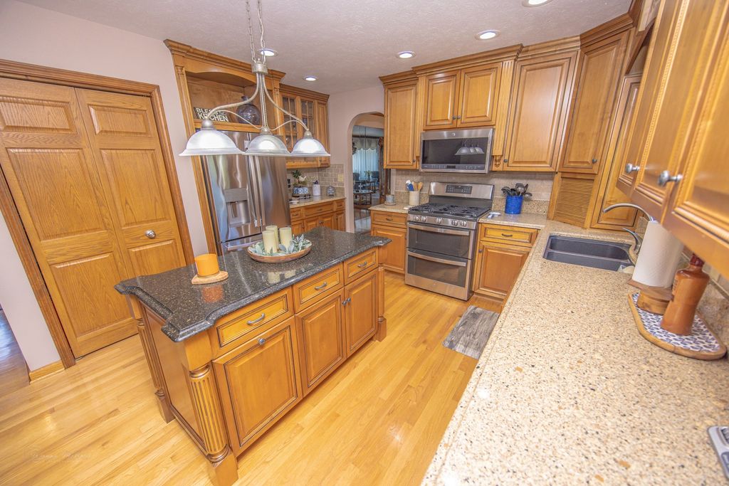 YOU WILL NOT FIND A MORE SUPERBLY MAINTAINED HOME THAN THIS ONE OWNER HOME IN SOUGHT-AFTER LAKE LAWN SUBDIVISION! UPDATES INCLUDE FURNACE/AIR (APPROX. 2017), ROOF (APPROX. 2018), H2O HEATER (APPROX. 2019), WATER SOFTENER (APPROX. 2021), WASHER/DRYER (APPROX. 2021/2022), SUMP PUMP AND RADON MITIGATION SYSTEM (2025). THE SPACIOUS EAT-IN KITCHEN WAS UPDATED WITH CUSTOM BRAKAR CABINETRY/ISLAND/CAMBRIA TOPS/HARDWOOD FLOORING/ANDERSEN DOOR LEADING TO THE MULTI-LEVEL DECK. THE STAINLESS RANGE AND REFRIGERATOR ARE 1 YEAR OLD. THERE IS ALSO A BACK-UP GENERATOR, STORAGE SHED WITH CONCRETE FLOOR ON THE EXTRA LOT (APPROX. 14X15 WITH A GARAGE DOOR FOR EASY ACCESS), OVERSIZED/FINISHED 23X26 ATTACHED GARAGE, BRICK PAVER WALKWAY FROM THE DRIVE TO THE MULTI-LEVEL DECK WITH THE 16X32 INGROUND POOL HAVING BRICK PAVERS AROUND THE PERIMITER ALSO. THIS IS AN IDEAL HOME FOR ENTERTAINING/FUN AS THE DECK IS HUGE, THE POOL IS ABSOLUTELY BEAUTIFUL AND THE EXTRA LOT BEHIND THE HOME IS PERFECT FOR FOOTBALL, SOCCER, BASEBALL, ETC. - YOU WON'T FIND ANOTHER LOT LIKE THIS! IN ALL, THE TWO LOTS COMBINED ARE OVER 1/2 ACRE. THE EXTERIOR IS BRICK AND VINYL COATED STEEL SIDING & THE LANDSCAPING IS IMPECCABLE. THERE IS GLEAMING HARDWOOD FLOORING THROUGHOUT WITH THE LIVING ROOM AND DINING ROOM OFFERING A DARKER STAINED ACCENT BORDER, SOLID SIX PANEL DOORS, CROWN MOLDING IN THE LIVING ROOM AND DINING ROOM, CERAMIC TILE FLOORING IN THE BATHROOMS, BRICK FIREPLACE WITH GAS START ALONG WITH A FULL-WALL DRYBAR IN THE FAMILY ROOM (THE TV ABOVE THE FIREPLACE WILL STAY). THERE IS A DOUBLE SINK LAUNDRY TUB, HUMIDIFIER, ALARM SYSTEM, PLUS THE REFRIGERATOR IN THE BASEMENT WILL STAY. ALSO, THE FURNACE/AIR ARE CLEANED AND CHECKED ANNUALLY. THE REC ROOM COULD EASILY BE CONVERTED TO A 4TH BEDROOM IF NEEDED. GET INSIDE AS QUICKLY AS POSSIBLE AS THIS IS TRULY A ONE-OF-A-KIND PROPERTY!