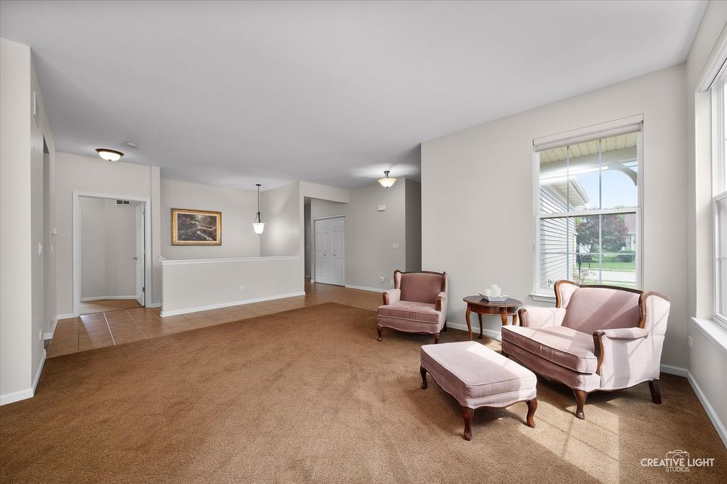 Welcome to Carillon a 55+ Active Adult Community. Live your best life in resort style living! Open concept ranch with large living & dining room. Gourmet kitchen with rich 42 inch cabinetry that includes custom pull out shelving & drawers, newer stainless steel double oven, French door fridge, microwave & Brazilian cherry hardwood flooring. Eating area with sliding glass door over looking private backyard area. Kitchen opens to family room, perfect for entertaining the entire family. Built-in shelving in family room with illumination lighting. Luxurious primary suite provides a tranquil retreat with large ensuite bath including soaking tub, separate shower & dual vanity, double closet & walk-in closet has customized organization system. Spacious office/flex room. Second bedroom suite includes ensuite bath, customized closet. Oversized basement with crawl space for additional storage ideal for storage needs or awaiting your finishing touches. Private back yard area features brick paver patio, awning and gas grill with attached gas line. Side of home opens to green space ideal for the grandkids to play. Sprinkler system in garden beds. Close proximity to path that leads to clubhouse. Central Vac system. Carillon club includes 24 hour guard/gated entry, snow and lawn maintenance, clubhouse, indoor and outdoor pools plus a grandchildren's pool! 3 hole golf course, walking paths, ponds, playground, exercise facility. Activities, trips & clubs, something for everyone! Close proximity to shopping & restaurants.