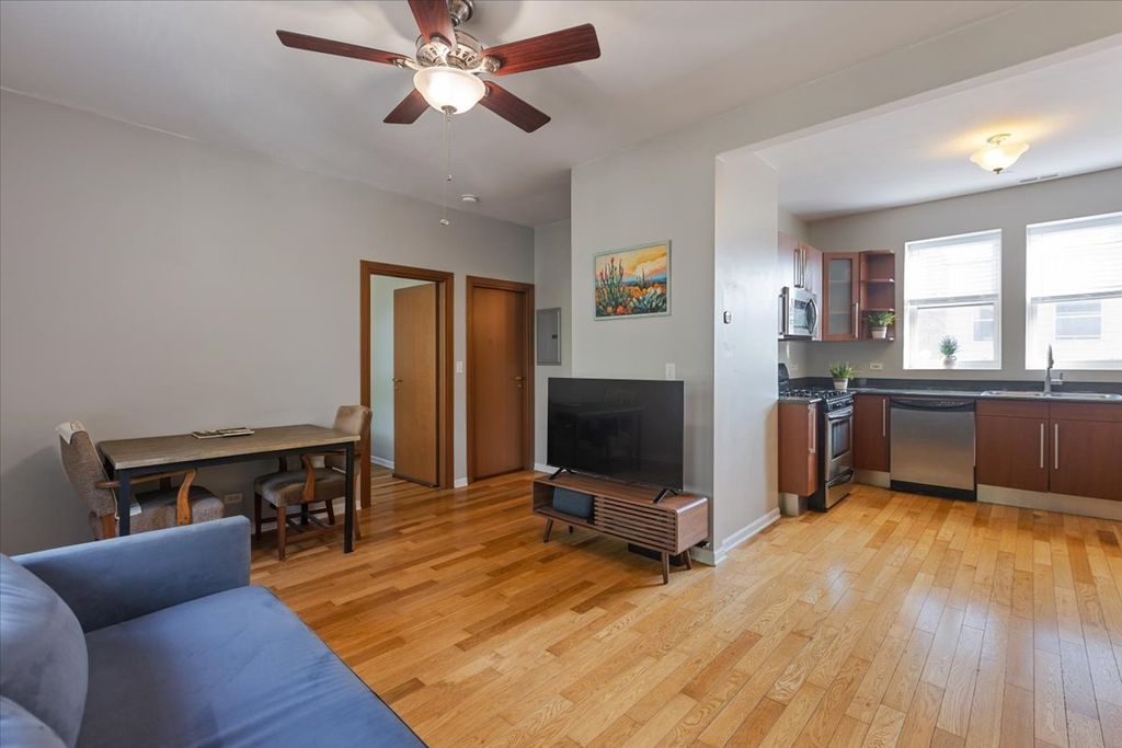Welcome to an Albany Park gem! Fall in love with this modern bright and spacious 2-bedroom, 1-bath condo featuring hardwood floors, gorgeous European kitchen cabinets with glass inlay, granite countertops, stainless-steel appliances and whirlpool tub. Open-concept layout with in-unit laundry for added convenience. Prime location, walk to Brown Line, across from parks and North Branch of Chicago River. Dining and shopping steps away! Pet Friendly! Schedule your property tour today!