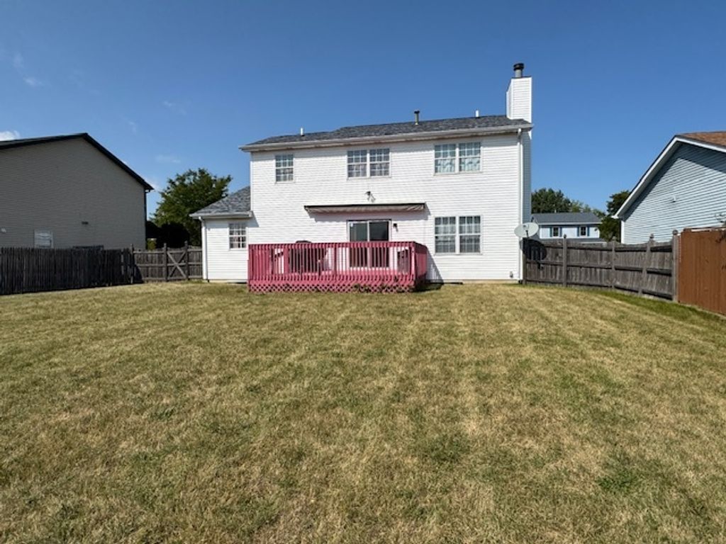 Nestled in desirable Harbor Ridge, this charming two-story Colonial offers both comfort and flexibility with four spacious bedrooms. The bright, open layout showcases a large living room with a cozy gas fireplace, and an open-concept kitchen featuring new granite countertops, a new dishwasher, and plenty of cabinet space. A separate formal dining room is ideal for hosting family gatherings, while a main-level half bath adds convenience. Sliding doors lead to a fully fenced backyard with a large deck and retractable awning-perfect for entertaining, pets, or play. Upstairs, the primary suite is joined by three generously sized bedrooms and a full bath. The partially finished lower level provides a versatile rec room/den, home gym, and laundry area, plus space for a fifth bedroom. Recent updates include a new furnace and central A/C, ensuring year-round comfort. Located on a quiet dead-end street, this home offers the perfect blend of convenience, comfort, and a welcoming residential setting.