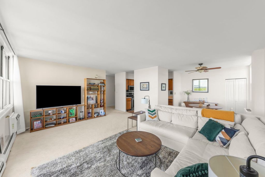 Welcome to 33 N Main St #11A, a stunning top floor, end-unit condo offering unbeatable views of the Chicago skyline from your private balcony. Perfectly positioned just steps from the Lombard Metra station and minutes to schools, parks, and all the dining and shopping of downtown Lombard, this home blends convenience with comfort. Inside, you'll find fresh updates including a brand-new microwave and stove, plus plush luxury carpet that adds a touch of elegance throughout. The spacious living area is filled with natural light, making it ideal for entertaining or simply relaxing while taking in the panoramic views. Retreat to your private balcony at the end of the day and enjoy city lights twinkling on the horizon. This secure, professionally managed building offers peace of mind and ease of living. With its prime location, modern updates, and rare skyline views, this condo is truly a standout opportunity. All utilities included in HOA fees & 2 Heated Parking Spots & Storage Unit.