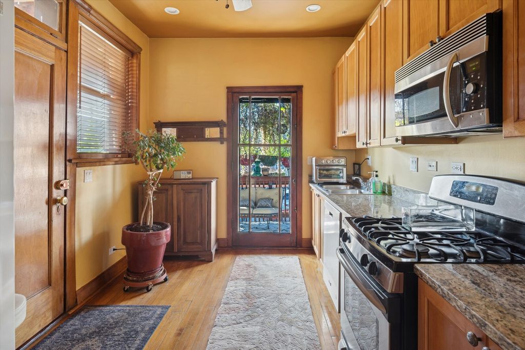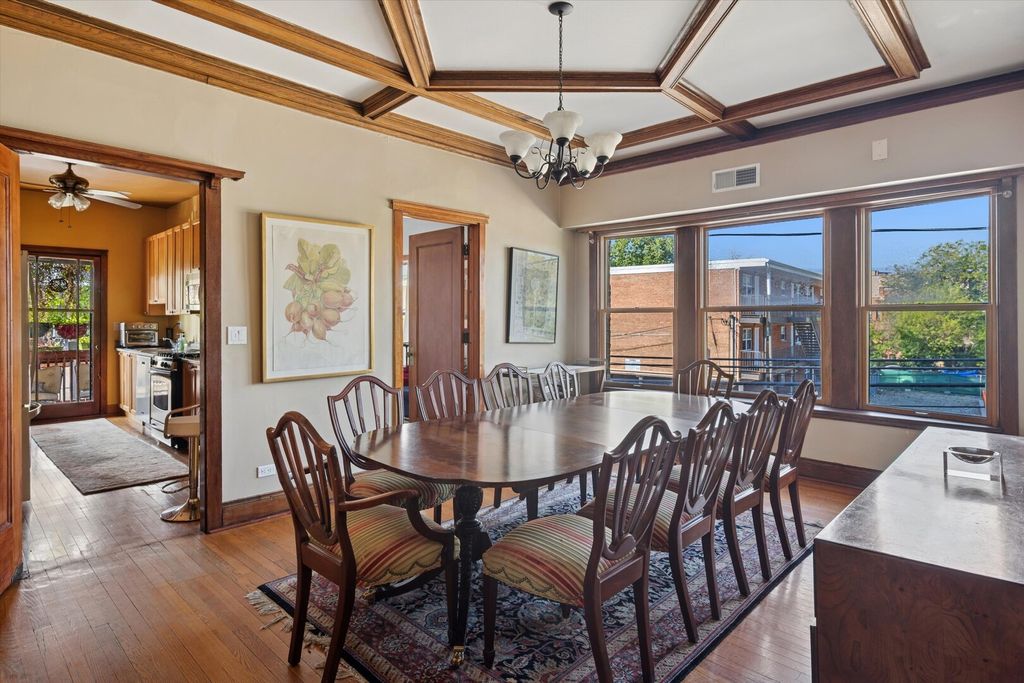 Welcome to your new home in the heart of historic Sheridan Park! This stunning three-bedroom, two-bath condo perfectly blends vintage charm with modern updates. The soaring ceilings and hardwood floors add to the elegance of the space, while charming original built-in cabinets and woodwork offer a nod to the home's rich history. The primary en-suite offers privacy when guests stay over. The kitchen features tall cabinets and granite countertops and leads into the large dining room with beautiful coffered ceilings. Enjoy THREE outdoor spaces- a back deck, front porch with original tiles, and common rooftop deck with skyline views. Solid building with healthy reserves and low assessment. The unit comes with huge storage space in the basement. Rented parking available across the alley behind the building. Desirable location close to coffee shops, restaurants, the Red Line, Clark bus, and a short jaunt to the lake and nearby Andersonville.